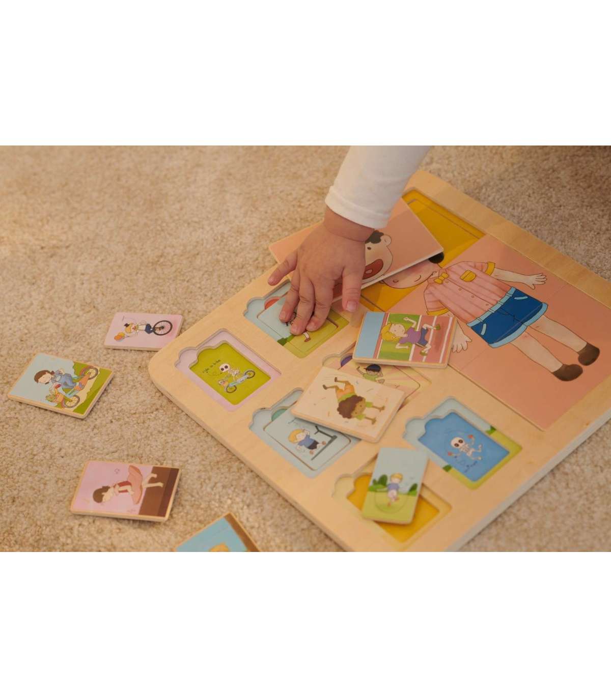 - - Komplekt sisaldab: laua ja 18 elementi, mis kujutavad lapsi erinevates füüsilistes tegevustes,