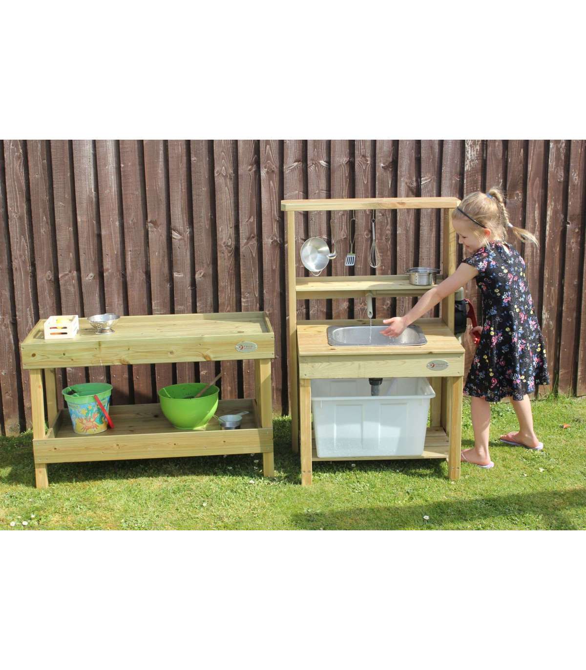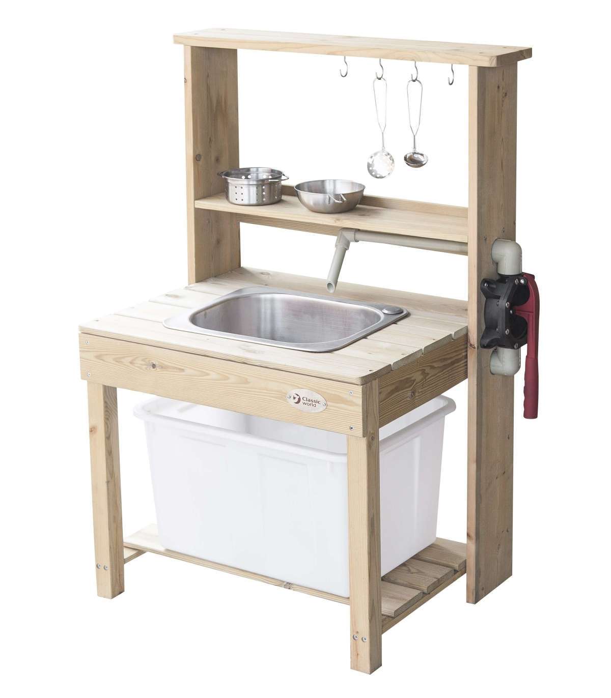 Kaunis puidust väliköök tuntud puidust mänguasjade brändilt Classic World on suurepärane valik lastele, kes armastavad kehastuda täiskasvanute rollidesse, mida nad igapäevaelus näevad. Puidust mänguasi võimaldab rollimänge, soodustab koosmängu kaudu teiste lastega suhtlemist ning õpetab vastutustunnet. Lapsed võivad tunda end tõeliste peakokkadena ning toitude valmistamise mäng perele ei lõpe kunagi. Köögis on koht, kuhu ühendada veesüsteem — piisab plastikust konteineri asetamisest, et vesi saaks kuhugi voolata.
