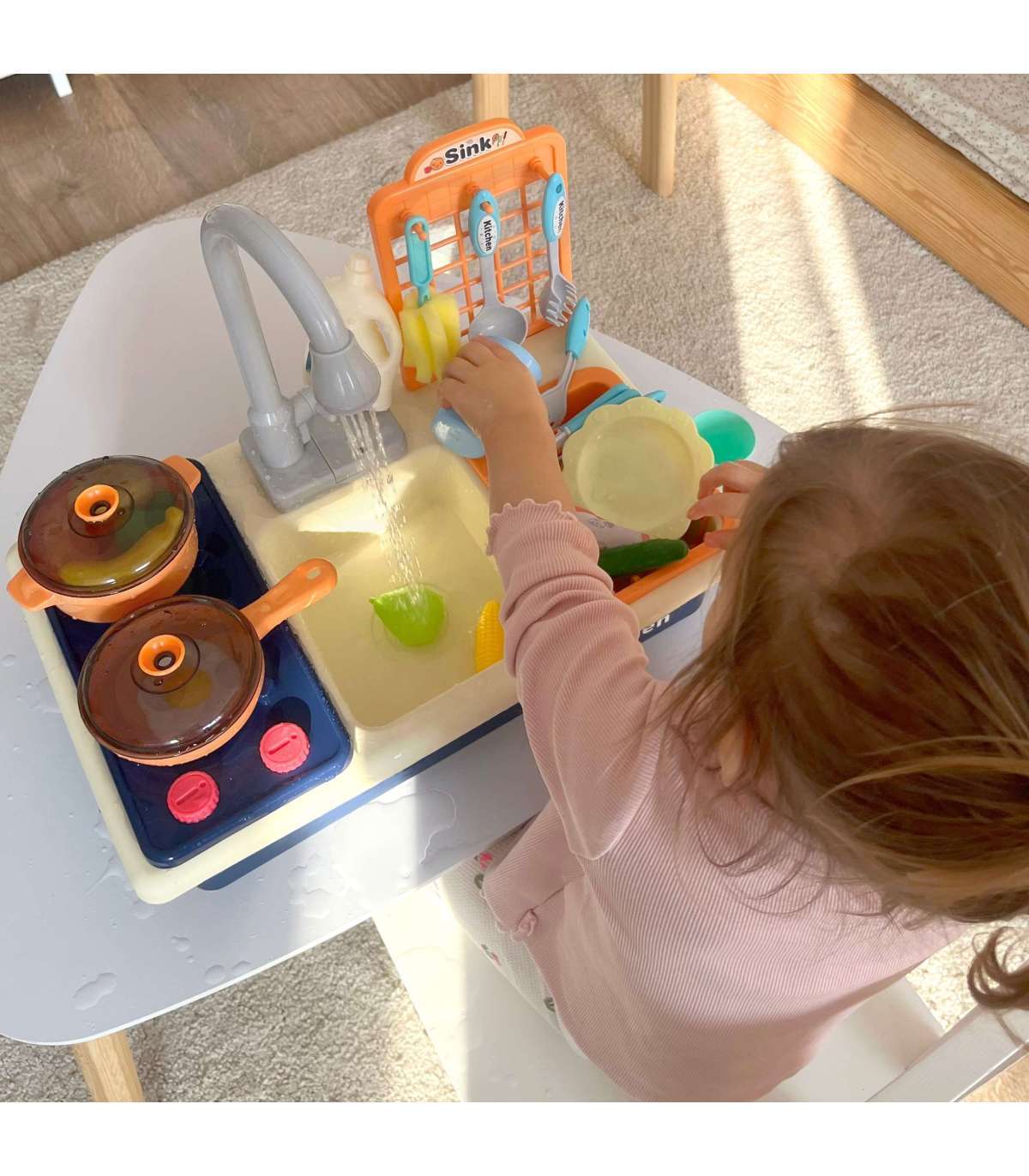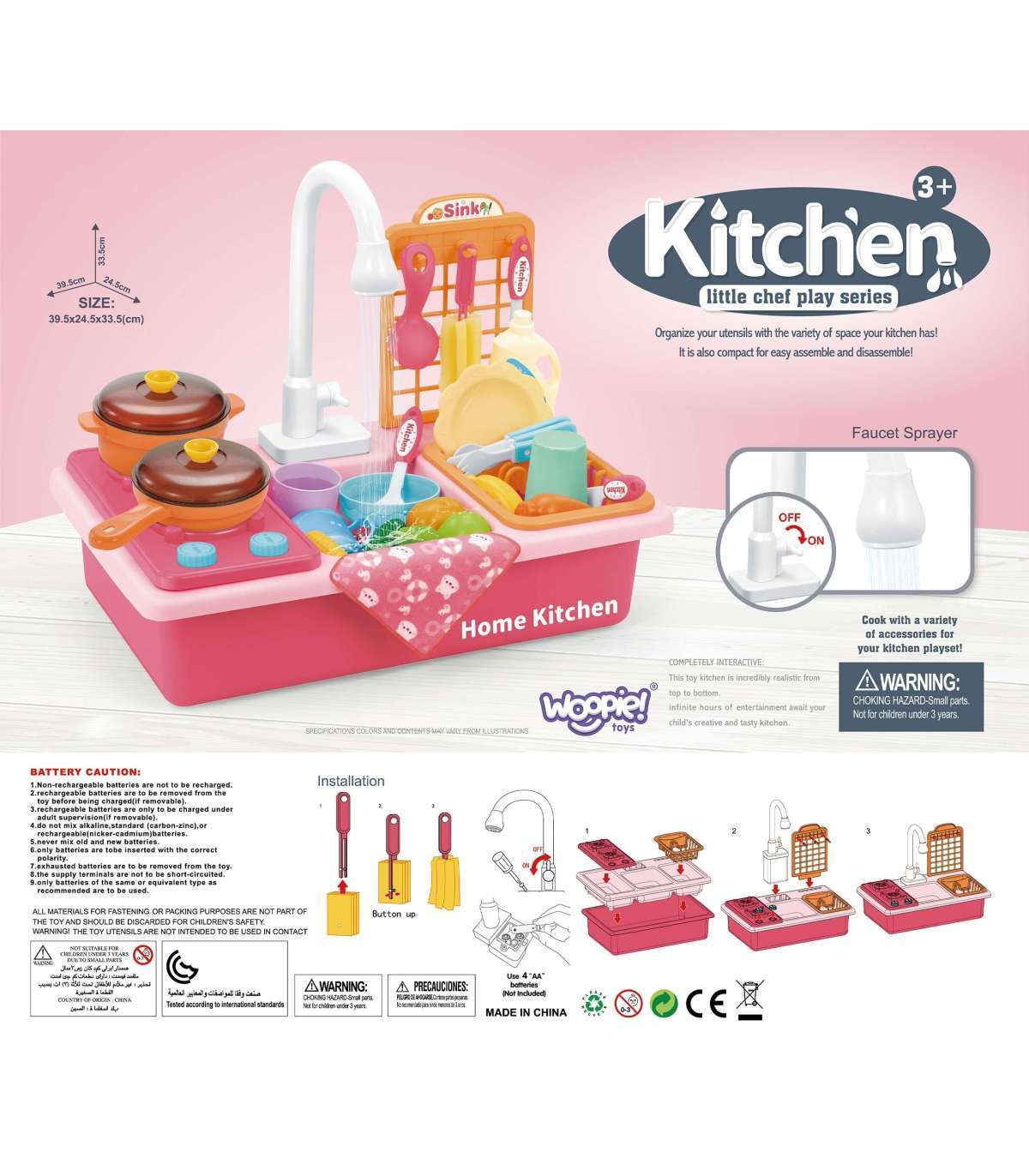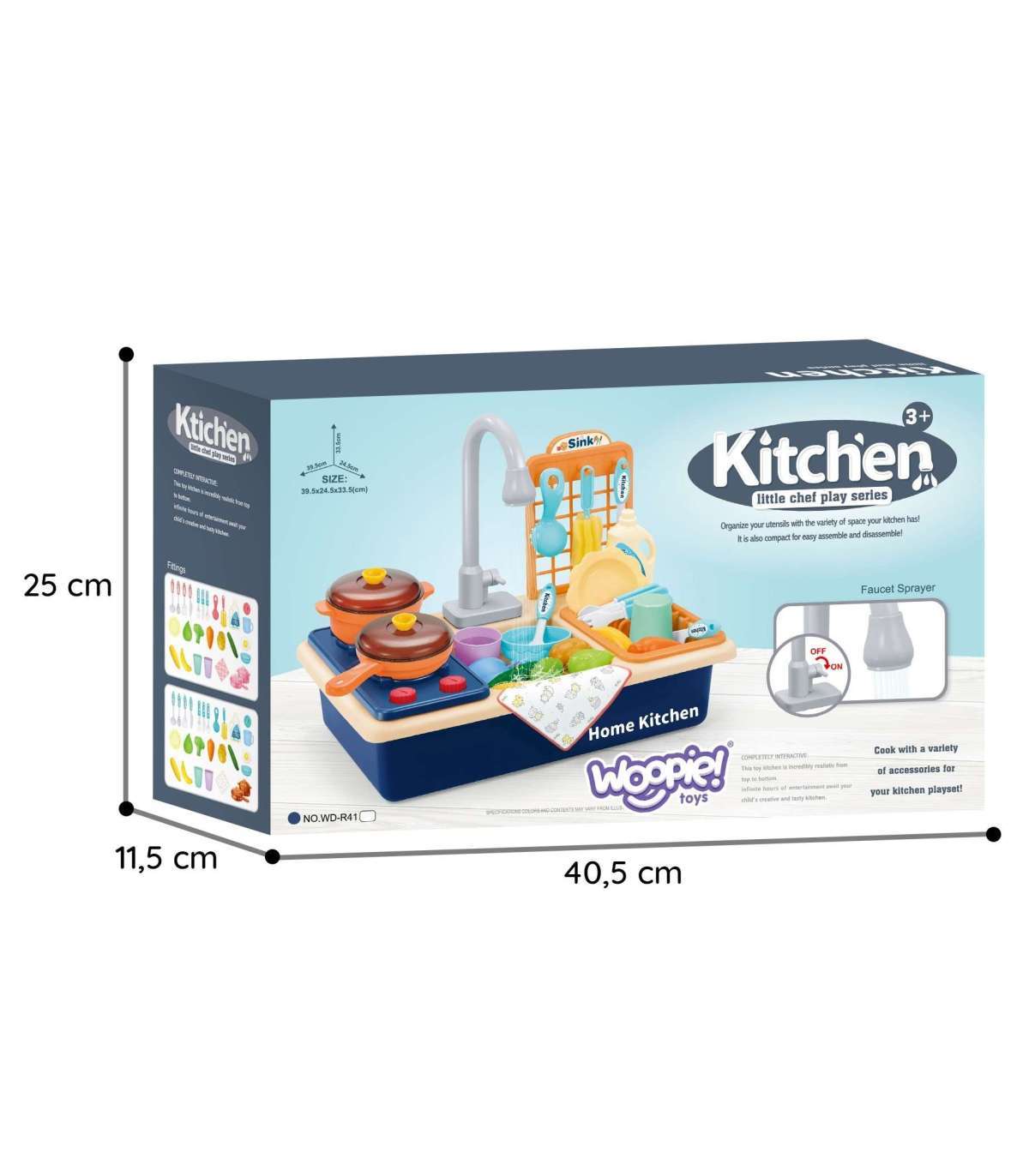 Kraanikauss ja pliit 2-ühes brändilt WOOPIE võimaldab lastel kokata ja nõusid pesta nagu nende vanemad - matkida alates varasest east! Mänguasi on täiuslikult jäljendatud, mistõttu laps tunneb, et teeb tõelisi köögitöid. Sellel on liigutatavad osad nagu pliidinupud ja segisti, millest voolab päris vesi. Piisab, kui valada kaussi vett ja vaadata, kuidas laps mängib; pärast mängu tuleb lihtsalt tühjendada alumine kauss. Lisaks sisaldab komplekt palju tarvikuid nagu potid ja toiduained. Mängimine kokkamise, nõudepesemise ja sarnaste töödega aitab lastel arendada vastutustunnet ja iseseisvust.