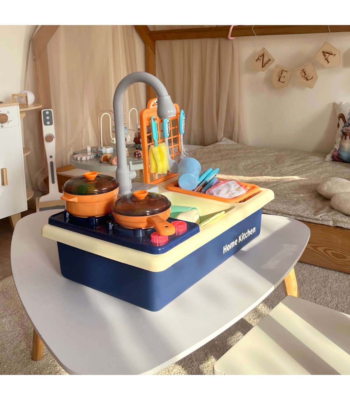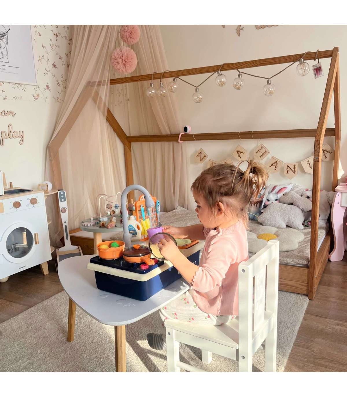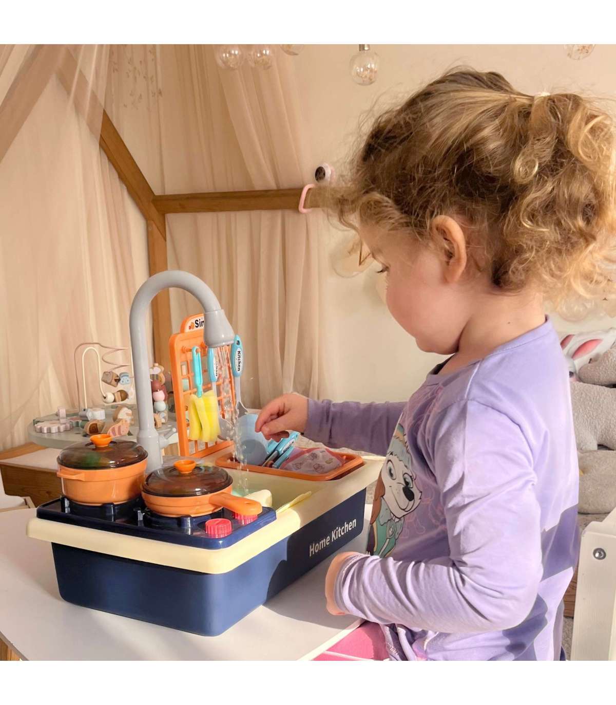 Kraanikauss ja pliit 2-ühes brändilt WOOPIE võimaldab lastel kokata ja nõusid pesta nagu nende vanemad - matkida alates varasest east! Mänguasi on täiuslikult jäljendatud, mistõttu laps tunneb, et teeb tõelisi köögitöid. Sellel on liigutatavad osad nagu pliidinupud ja segisti, millest voolab päris vesi. Piisab, kui valada kaussi vett ja vaadata, kuidas laps mängib; pärast mängu tuleb lihtsalt tühjendada alumine kauss. Lisaks sisaldab komplekt palju tarvikuid nagu potid ja toiduained. Mängimine kokkamise, nõudepesemise ja sarnaste töödega aitab lastel arendada vastutustunnet ja iseseisvust.