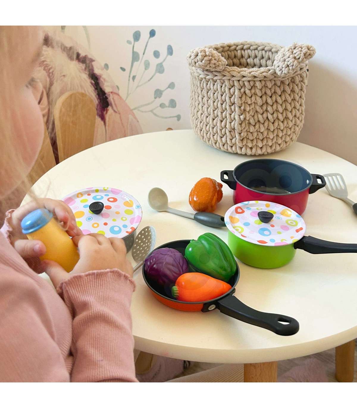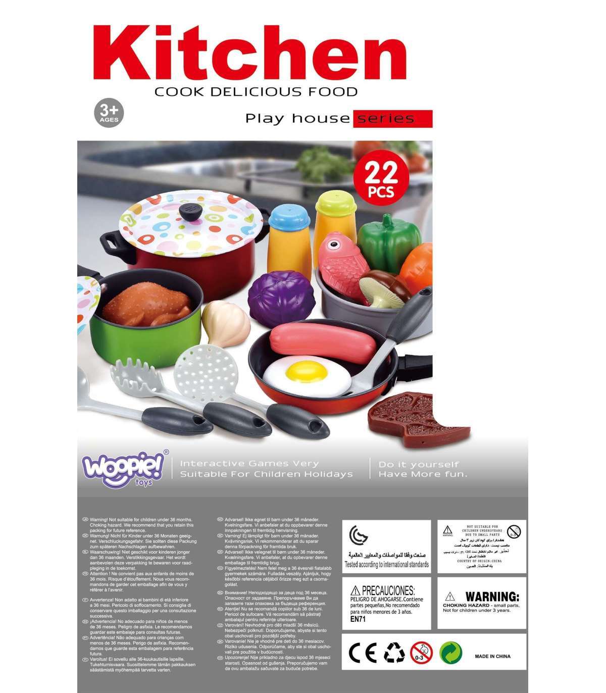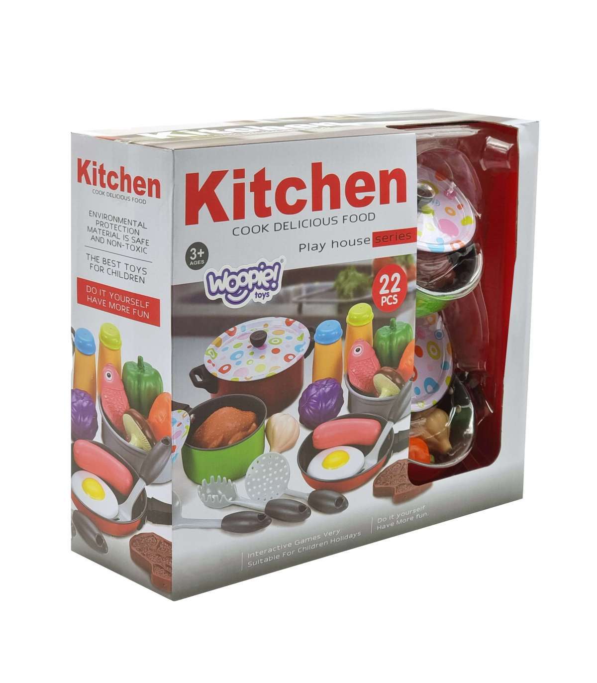 Suur kokakomplekt margilt Woopie on maiuspala iga väikese kokakese jaoks. Iga laps matkib vanemaid, ja Woopie komplekt võimaldab omada oma nõusid ja valmistada oma roogasid. Kõik esemed on valmistatud hoolikalt. Komplektis on pott ja kastrul, millel on oma kaas, lisaks pann, kauss, toiduained ja köögiriistad. Komplekt on mõeldud lastele alates 3. eluaastast.
