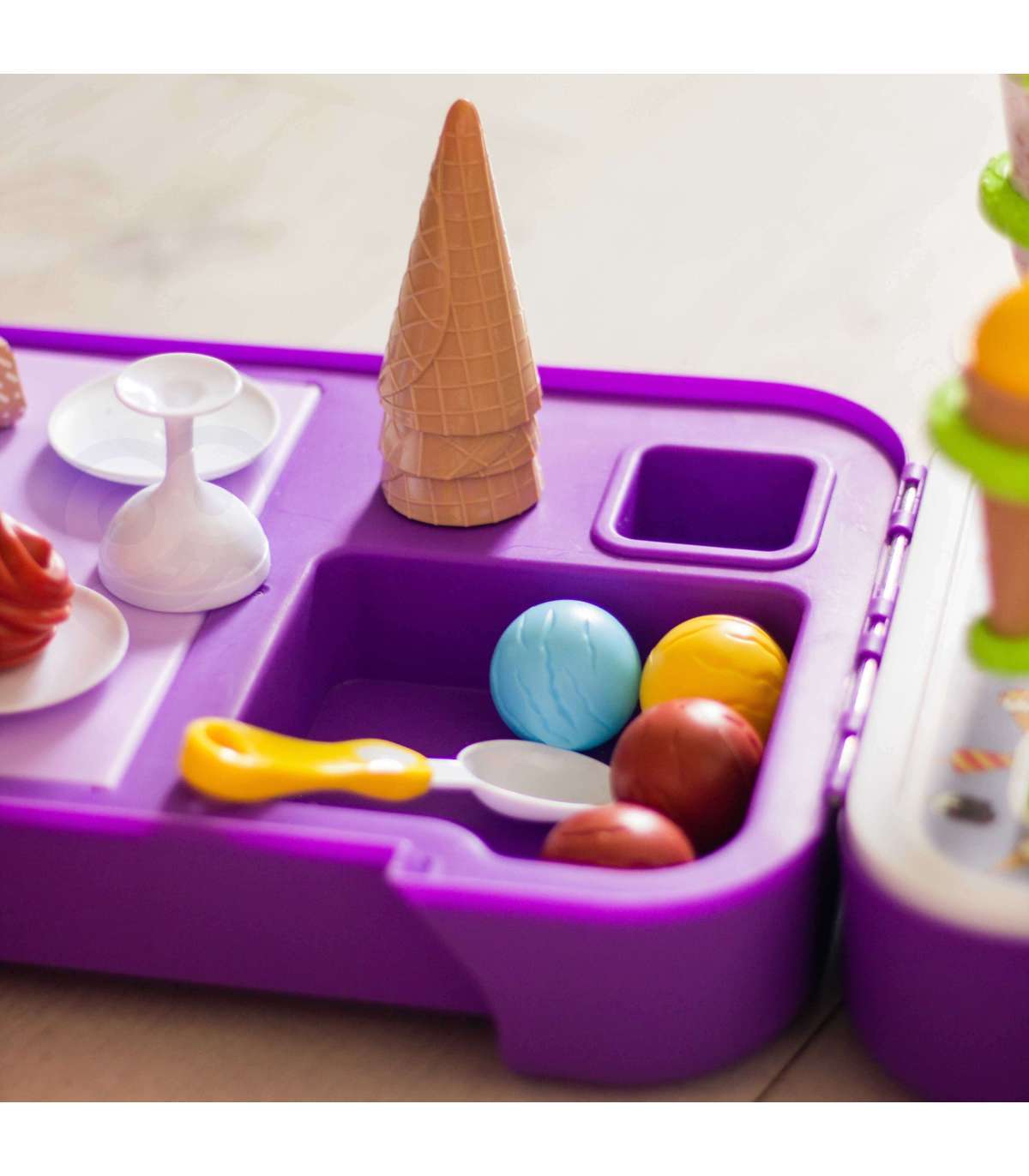 Jäätiselett on loodud vastama kõige nõudlikumatele lastele. Väikelaste pood on projekteeritud mõeldes jäätiste müügile. Sina ja su lapsed armastate disaini originaalsust ja seda, kuidas see ergutab kujutlusvõimet. Väike pood-jäätisekohvik lastele mitte ainult ei soodusta mängu, vaid toimib ka õpetliku mänguasjana lastele. Komplekt sobib suurepäraselt sünnipäevapidudeks, basseinipidudeks, mänguväljakule, klassiruumi või lasteaeda. See supertoode sobib suurepäraselt kingituseks teie väikestele! Kogu komplekt on pakitud stiilsesse kohvrisse.