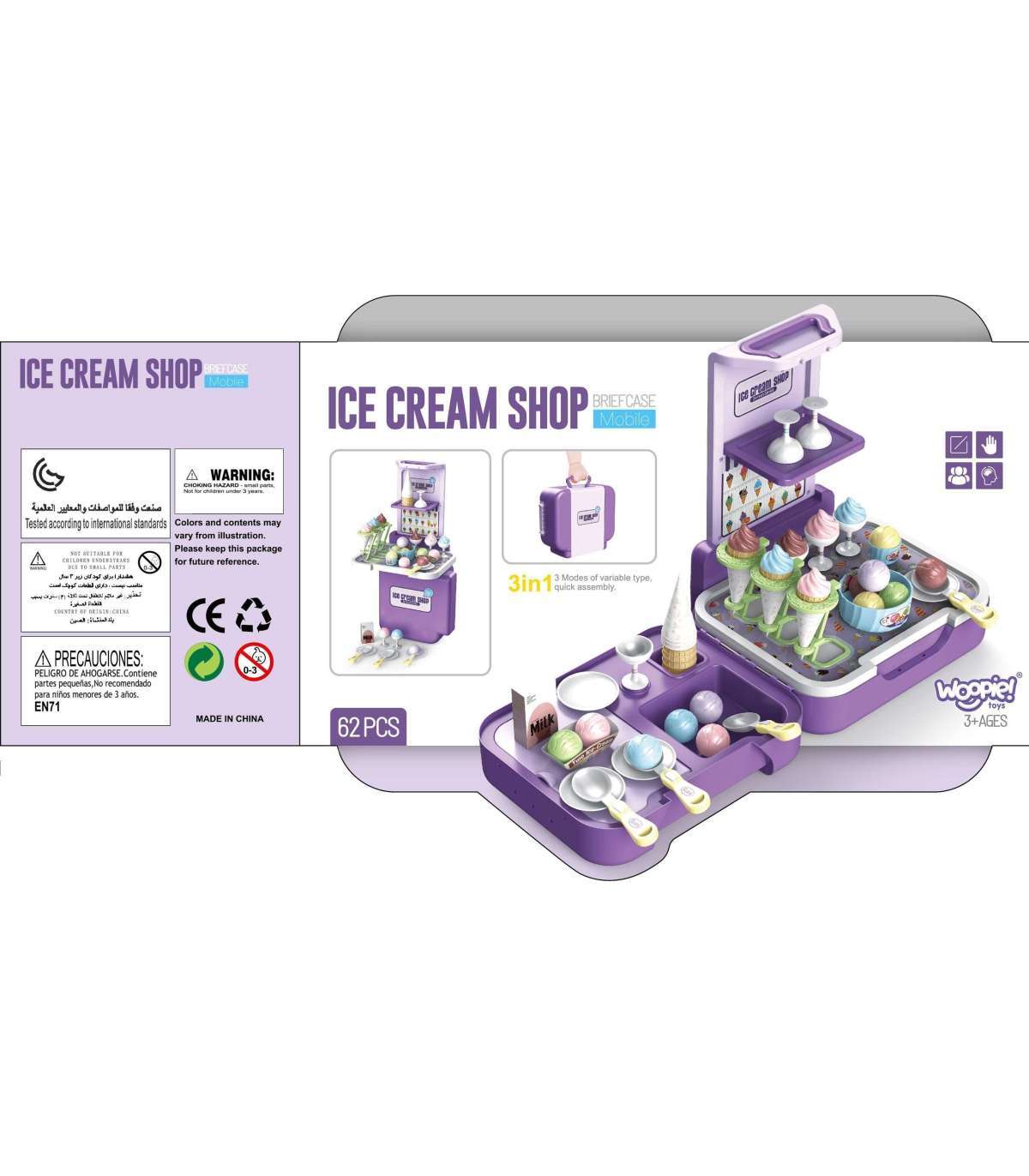 WOOPIE jäätisekohver 3-ühes (köök, pood, jäätisekohvik), kaasaskantav, 62 osa