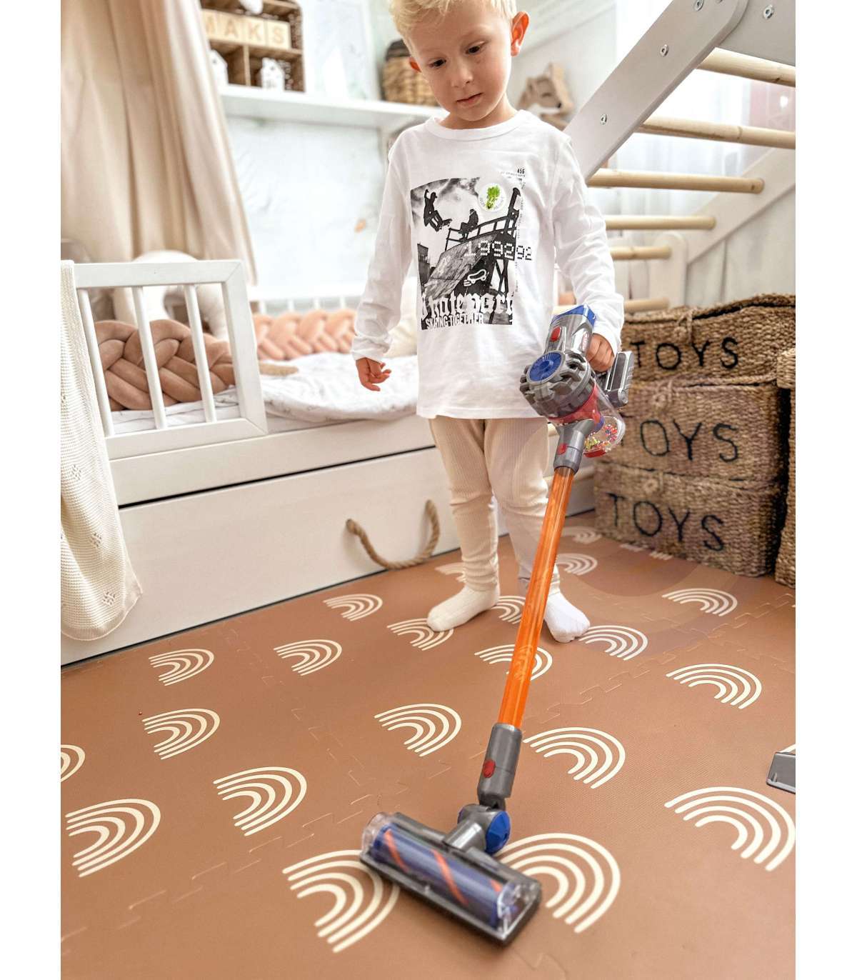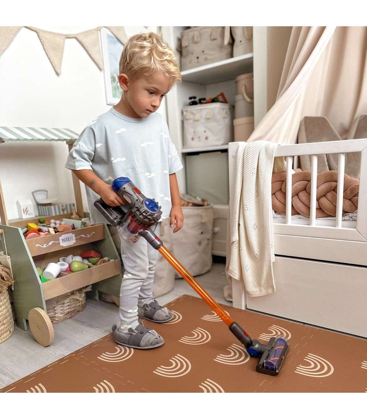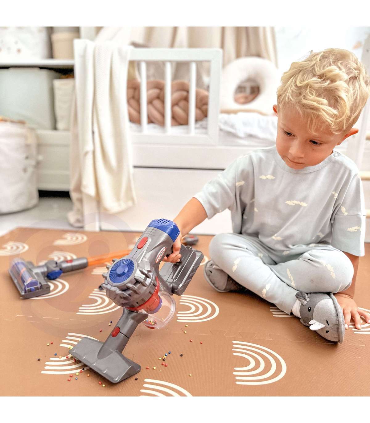 Tolmuimeja vertikaalne 3-ühes kaubamärgilt Woopie on ideaalne valik väikestele koduabilistele. Imemisfunktsioon ja heli teevad koristusmängu veelgi realistlikumaks ja atraktiivsemaks. Eemaldatav konteiner mängujäätmete jaoks on lihtne tühjendada. Mänguasi on valmistatud kõrgekvaliteedilistest lastele ohututest materjalidest. Tolmuimejal on mugav käepide, tänu millele saab laps seda ühest kohast teise kanda. Sobib suurepäraselt kingiks, et aidata last oma vanemat jäljendama, sest milline laps ei tahaks olla täiskasvanu?
