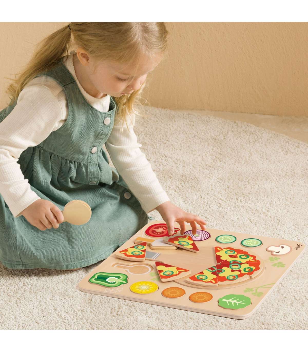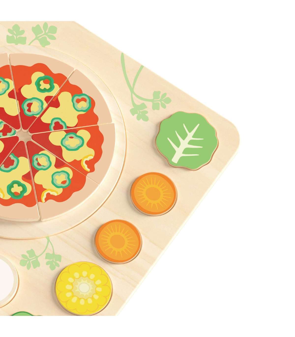 Tere tulemast maitsete ja loomingulise mängu maailma! Puidust pusle Pizza Puzzle Board on ideaalne mänguasi väikestele kokkadele. Värviliste lisanditega saavad lapsed luua oma pizzakombinatsioone, arendades samal ajal kujutlusvõimet, peenmotoorikat ja silma-käe koordinatsiooni.