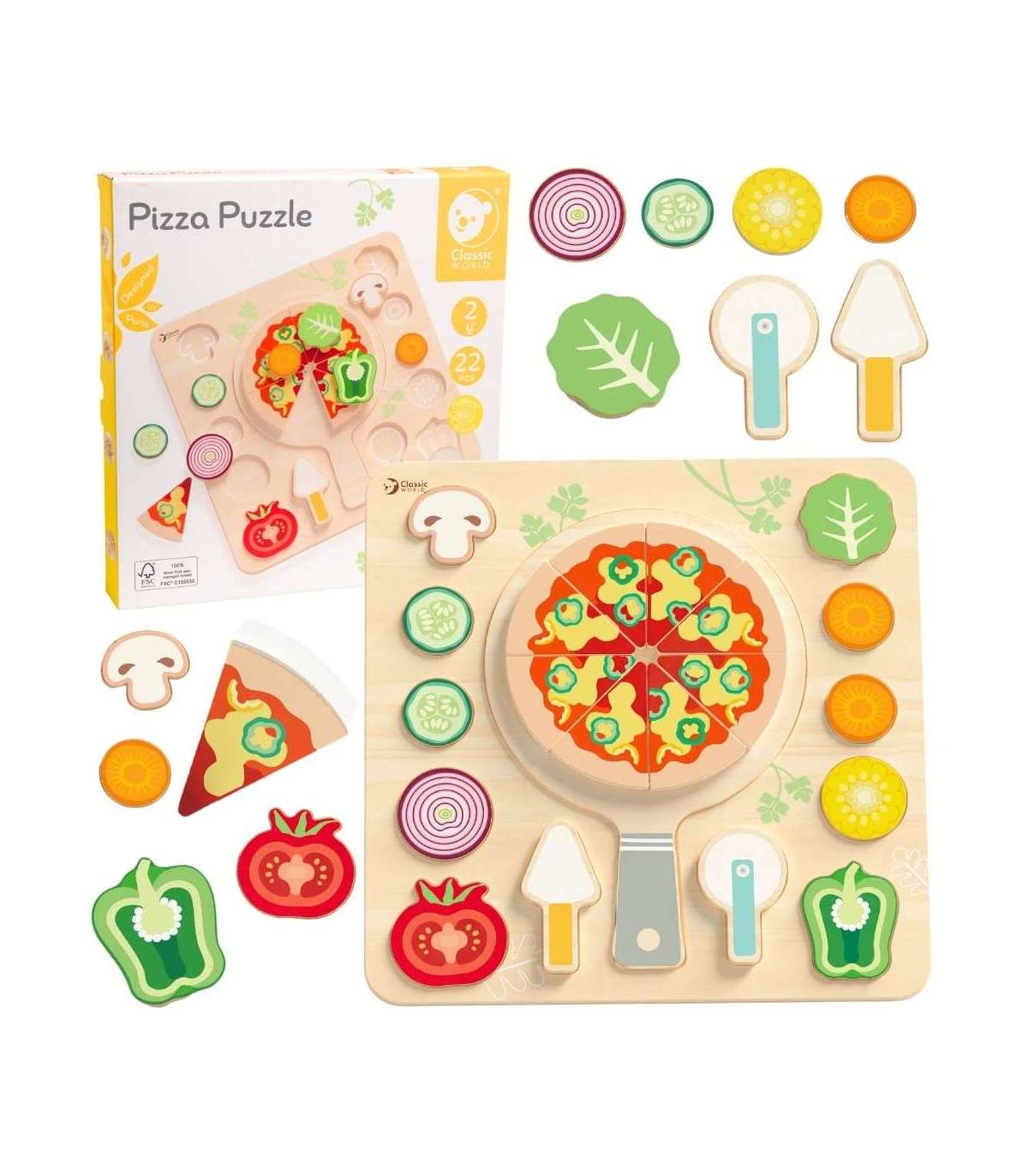 CLASSIC WORLD puidust lõigatav pitsapusle köögiviljadega, 22 osa.