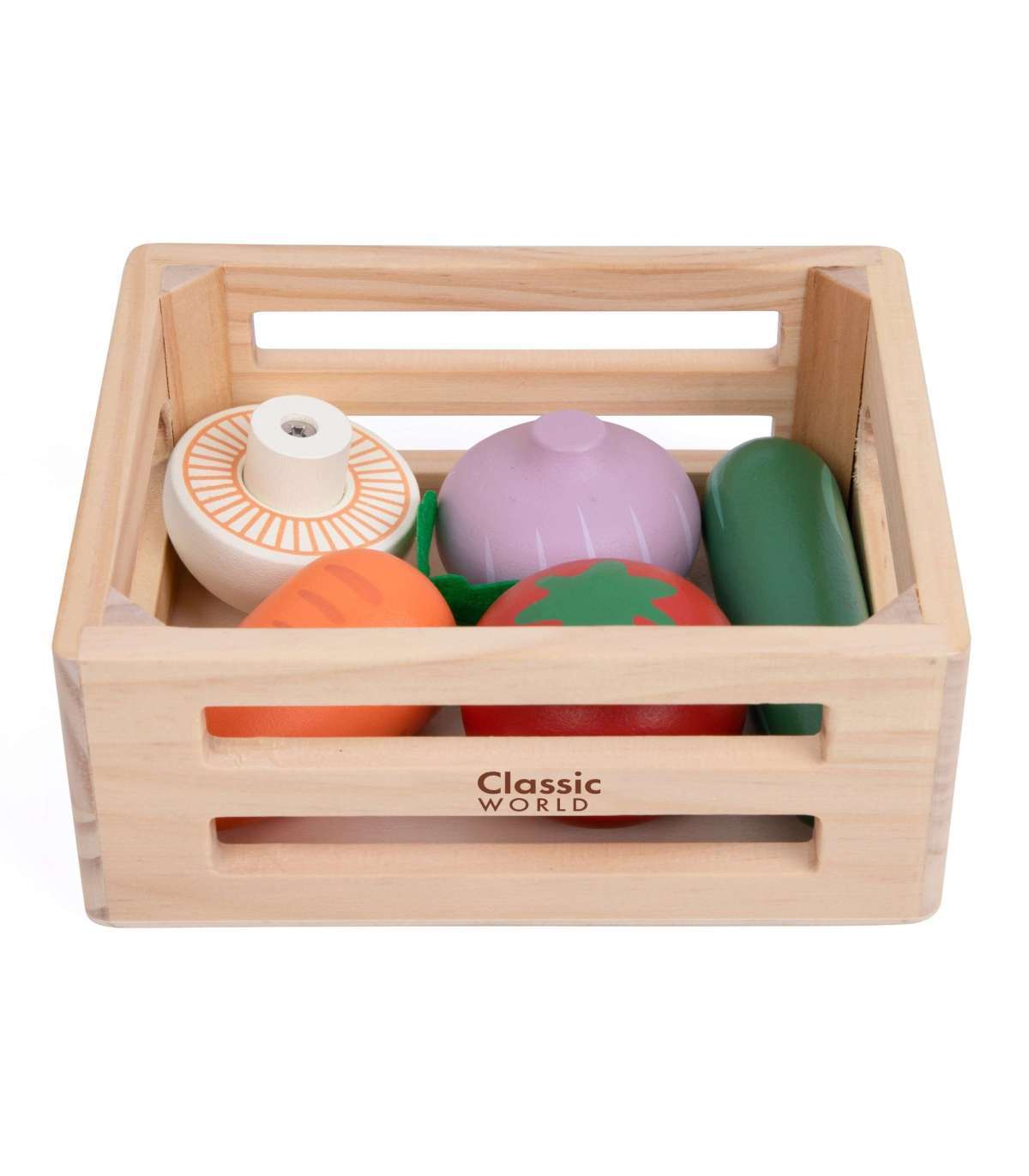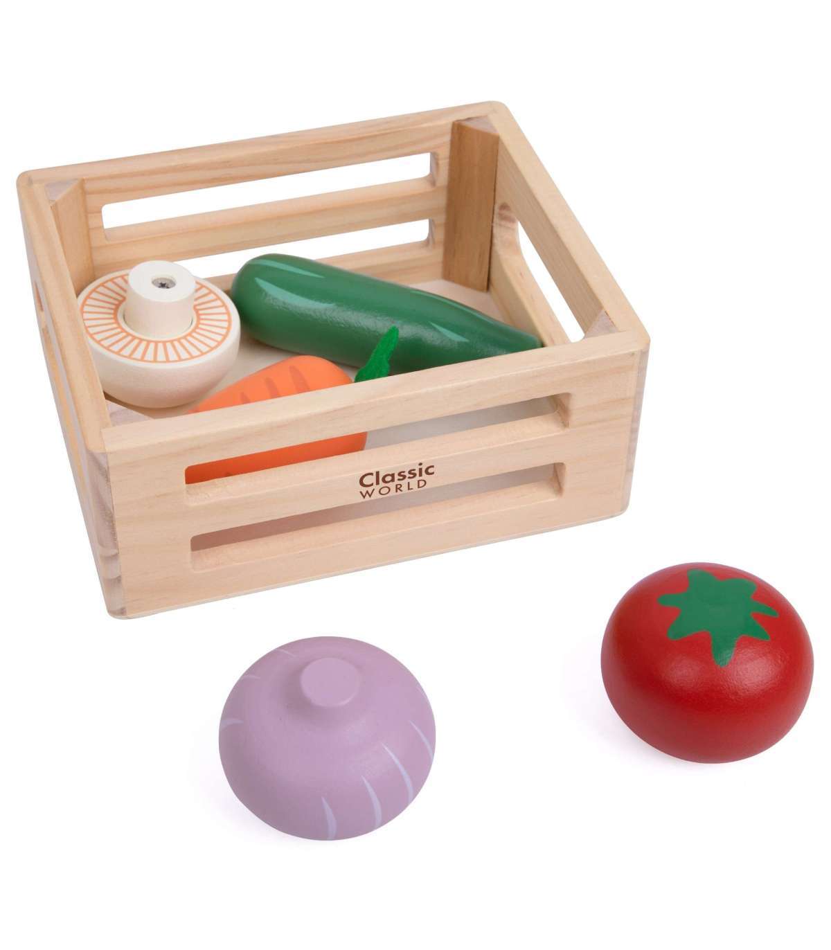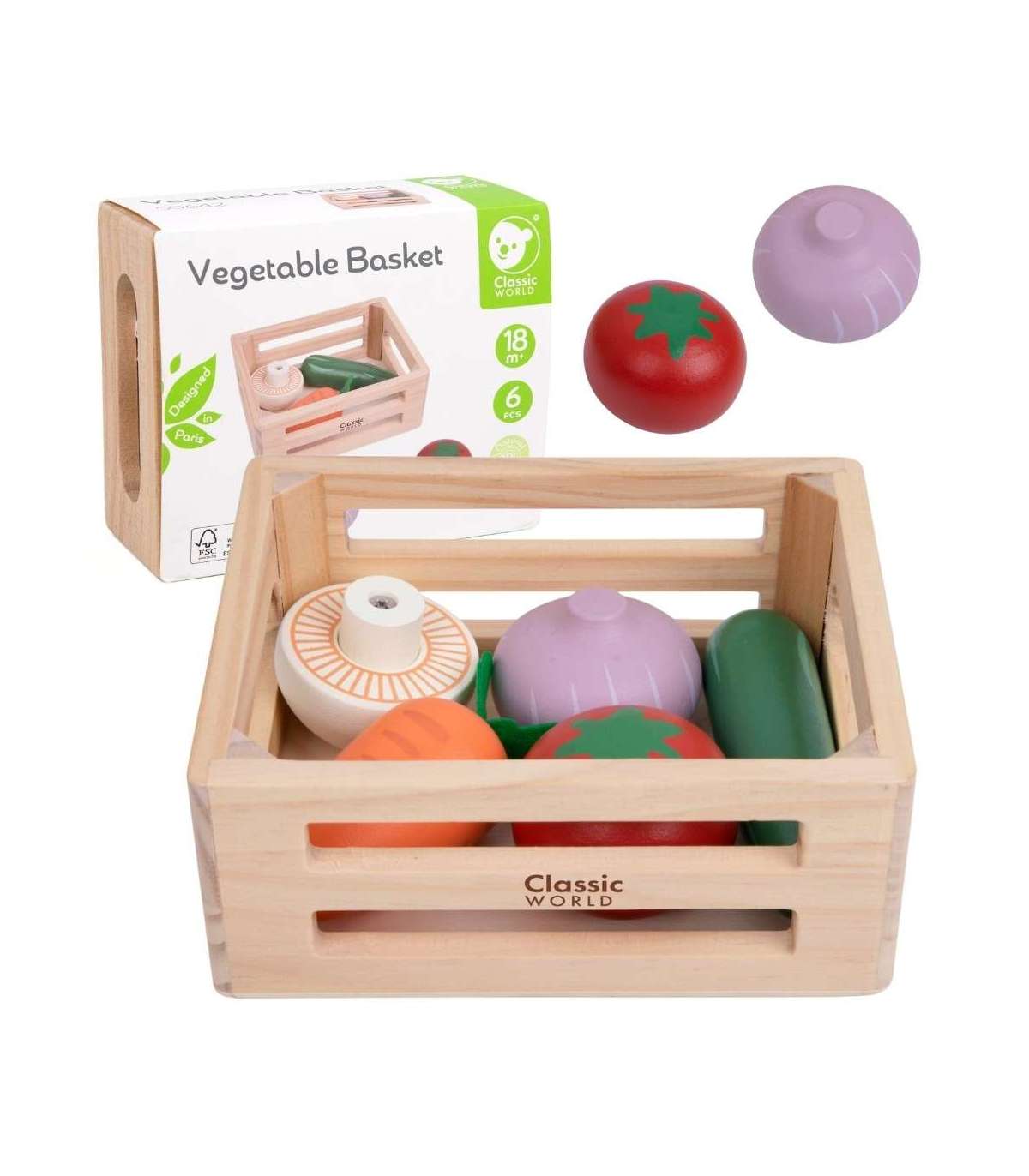 CLASSIC WORLD Puidust köögiviljade komplekt korvis, 6-osaline.