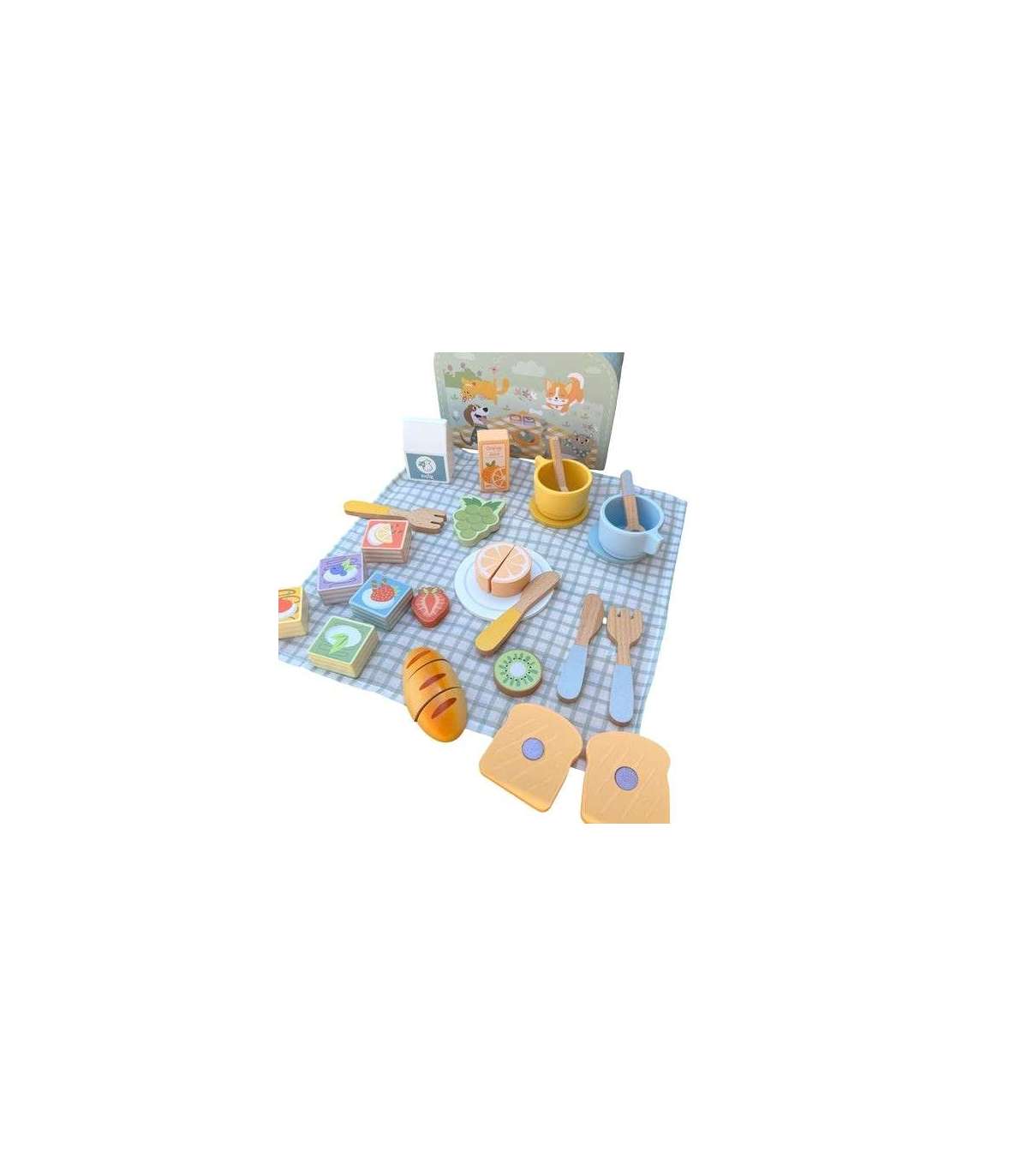 Puidust piknikukomplekt on komplekt aksessuaare mängimiseks toitude valmistamise ja serveerimise jaoks. See ilus puidust komplekt ei ole lihtsalt armas mänguasi – see on kutse loovale ja arendavale mängule kodus ja värskes õhus. Ideaalne kingituseks! Kõik osad on pakitud praktilisse kohvrisse, mistõttu on mänguasi lihtne hoiustada ja kaasa võtta reisile. Sobib nii individuaalseks mänguks kui ka ühistegevusteks õdede-vendade või sõpradega.