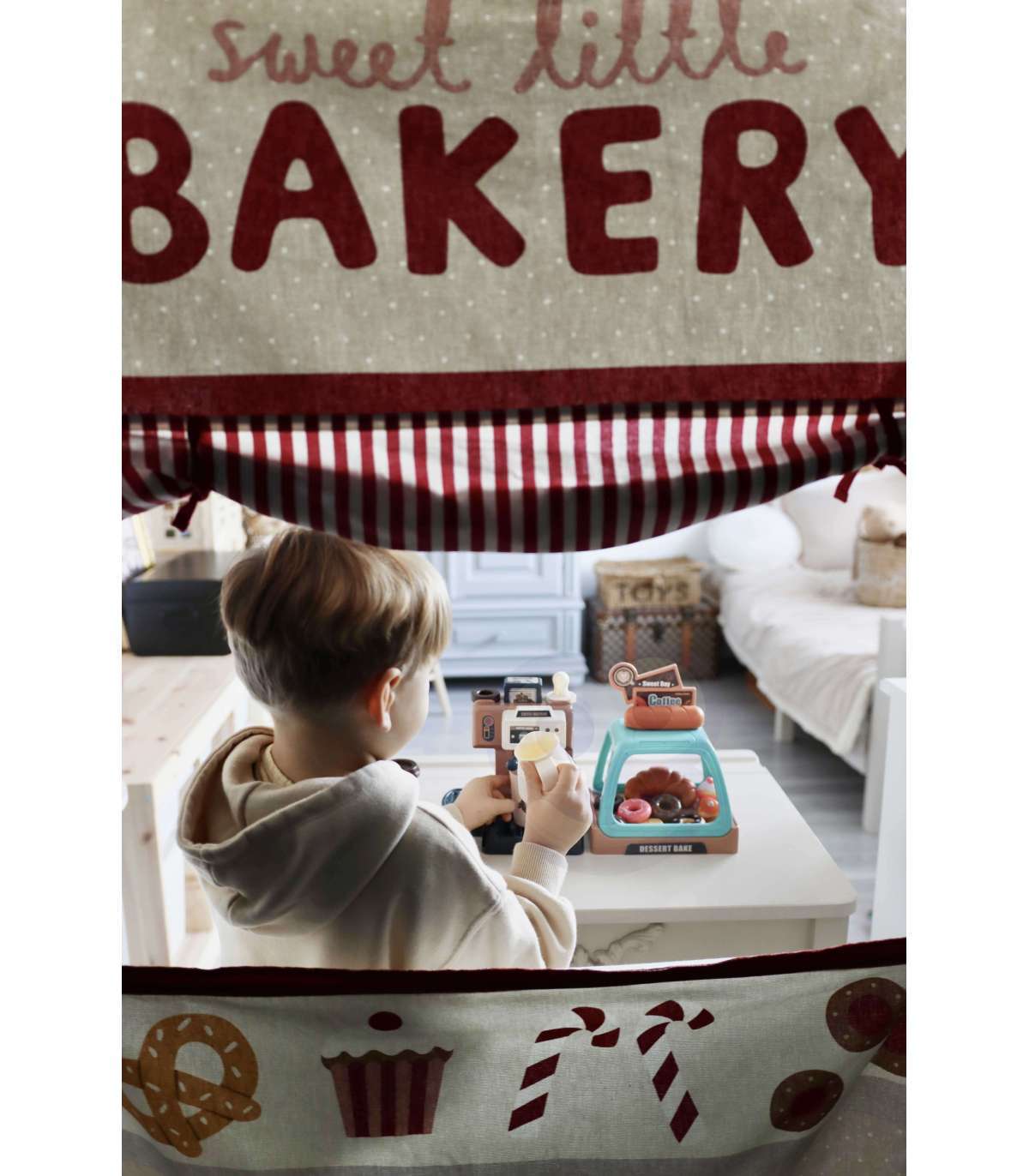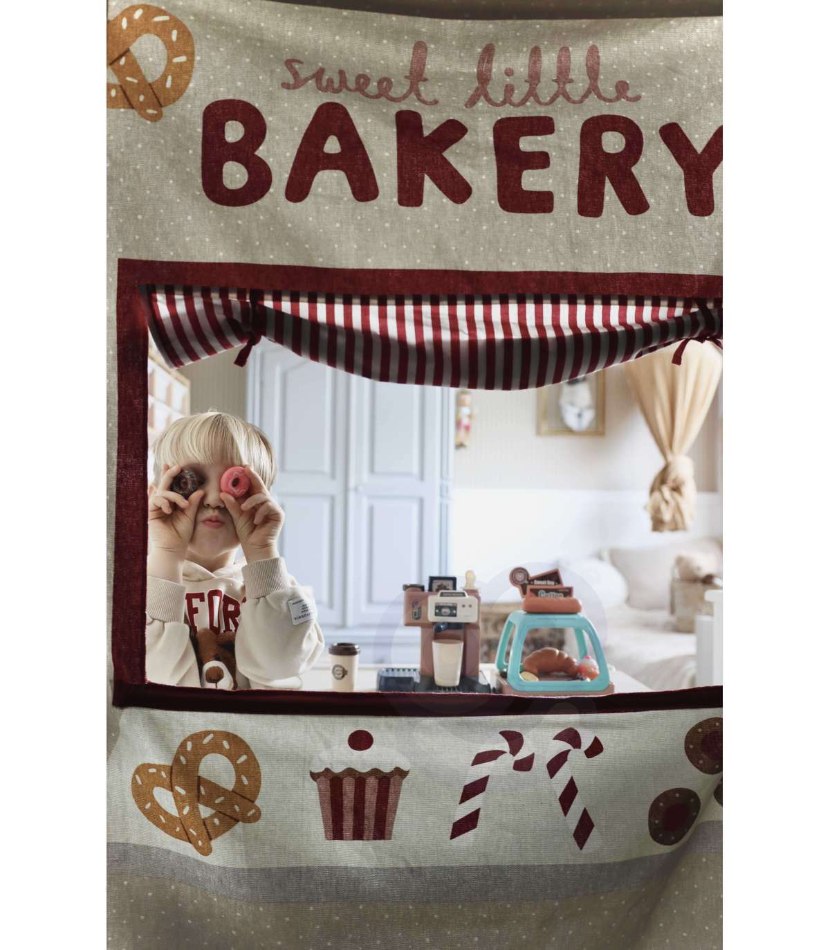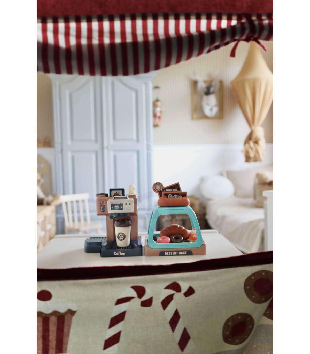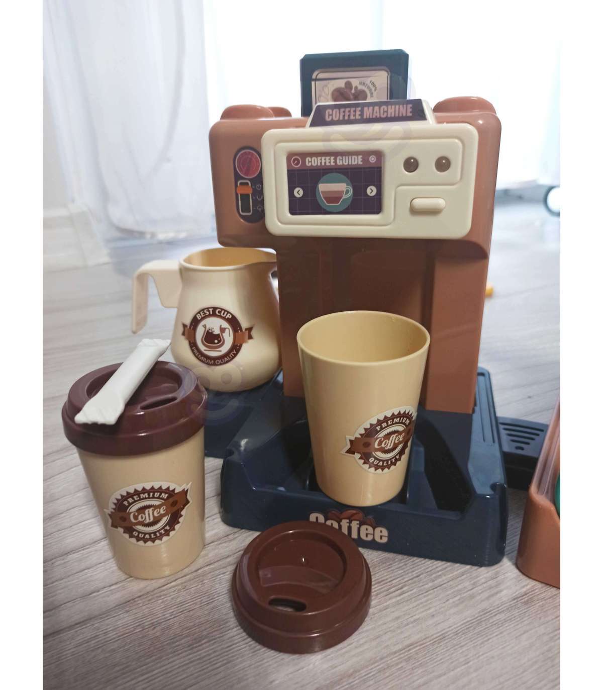 Ekspres do kawy od marki WOOPIE to idealny zestaw dla dzieci, które uwielbia wcielać się w rolę dorosłych. Zestaw oprócz ekspresu i wiaty na ciastka zawiera słodkości takie jak donuty czy babeczki w różnych smakach. Ekspres i witrynę można ze sobą dowolnie łączyć lub używać oddzielnie. Ekspres do kawy ma funkcję przepływu wody, wystarczy nalać od góry wodę do pojemnika, zamontować kolbę ekspresu, podstawić kubeczek i kawa gotowa! Ponadto wydaje dźwięki/odgłosy mielenia i parzenia kawy, świeci się wtedy mrugająca czerwona lampka, a gdy kawa będzie gotowa zaświeci się zielone światło i usłyszymy sygnał zakończenia pracy. Po zamontowaniu portu filtra usłyszymy również odgłos nalewania kawy. Zabawka z pewnością zaciekawi każde dziecko. Zabawa w sklep z przyjaciółmi pomoże rozwinąć świadomość i zdolności społeczne.