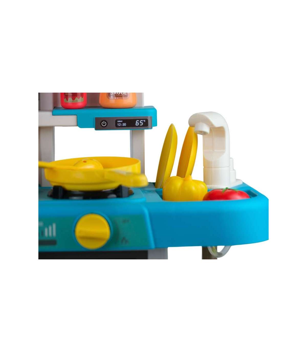 Rewelacyjna Kuchenka dla dzieci od marki WOOPIE to świetna i kreatywna zabawa dla twojego dziecka. Dzięki super odwzorowanym detalom, twoje dziecko poczuje się jakby naprawdę gotowało! Nasza kuchnia została wyposażona w funkcjonalny kran, z którego może lecieć prawdziwa woda. Dzięki obiegowi zamkniętemu, woda wróci do zlewu, umożliwiając dziecku zabawę w mycie warzyw, owoców, naczyń, czy nawet małych rączek. Z dwoma pokrętłami sterującymi palnikami, nasza kuchnia ożywa świetlnie i dźwiękowo. Pierwsze pokrętło włącza pierwszy palnik, rozbłyskując światłem, a drugie pokrętło aktywuje drugi palnik, towarzysząc temu migoczącym światłom i dźwiękom smażenia. Dodatkowo z pokrywki garnka wydobywa się para wodna, jak podczas prawdziwego gotowania! To nie tylko zabawka – to interaktywne narzędzie edukacyjne, które pozytywnie wpływa na rozwój wyobraźni i pobudza kreatywność dziecka.
