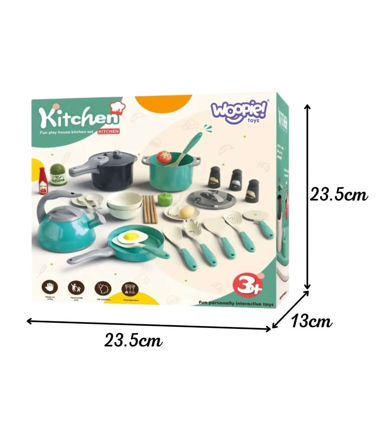 Ten obszerny zestaw do zabawy w kuchnię od marki Woopie to idealny prezent dla każdego małego kucharza! Zabawka pozwala dzieciom na naśladowanie dorosłych i odgrywanie ról, rozwijając ich kreatywność, wyobraźnię oraz zdolności manualne. Zestaw zawiera wszystko, czego potrzeba do przygotowania wymarzonego posiłku. W skład zestawu wchodzą liczne naczynia, garnki, patelnia, a nawet czajnik, wszystko wykonane z dbałością o detale. Dodatkowe akcesoria, takie jak sztućce, warzywa, jajko i przyprawy, sprawiają, że zabawa staje się niezwykle realistyczna i wciągająca. To doskonały sposób na naukę przez zabawę, rozwijanie zdolności społecznych i spędzanie czasu z rodzicami.