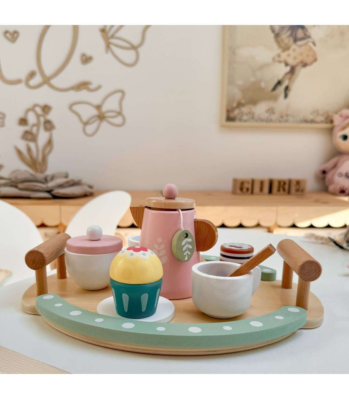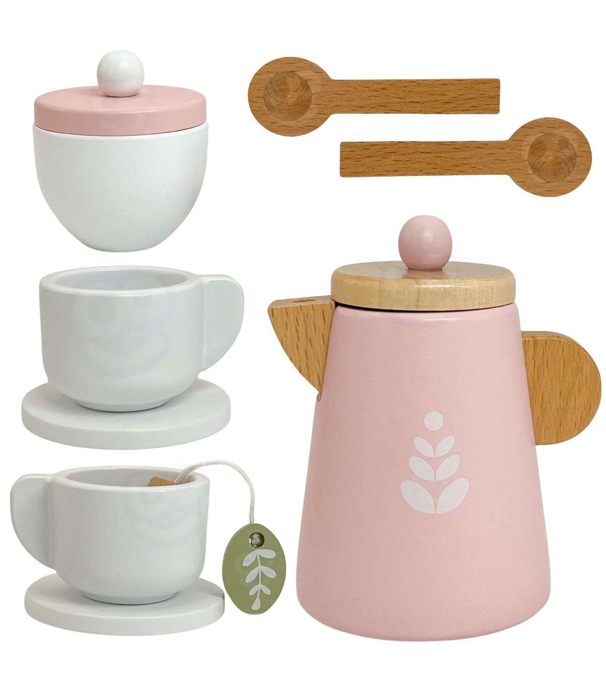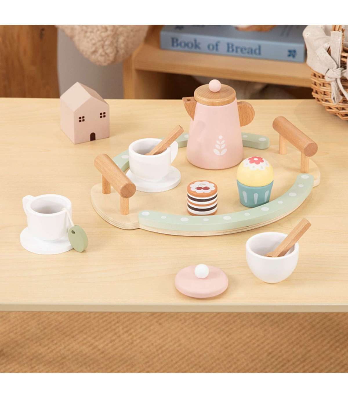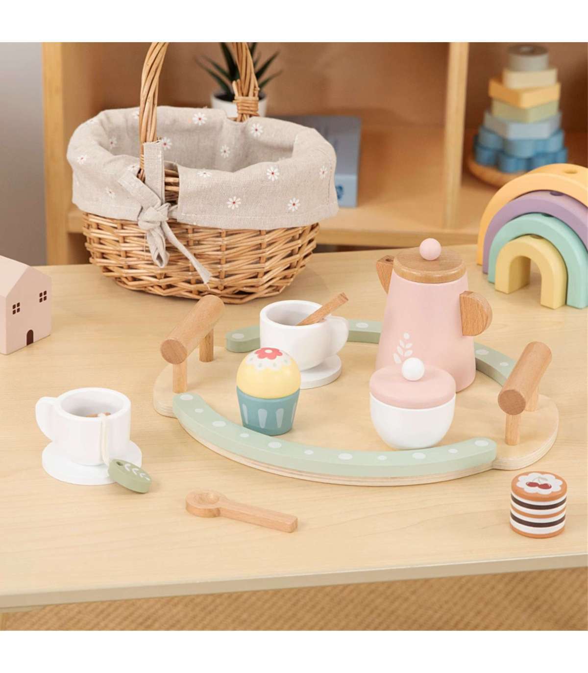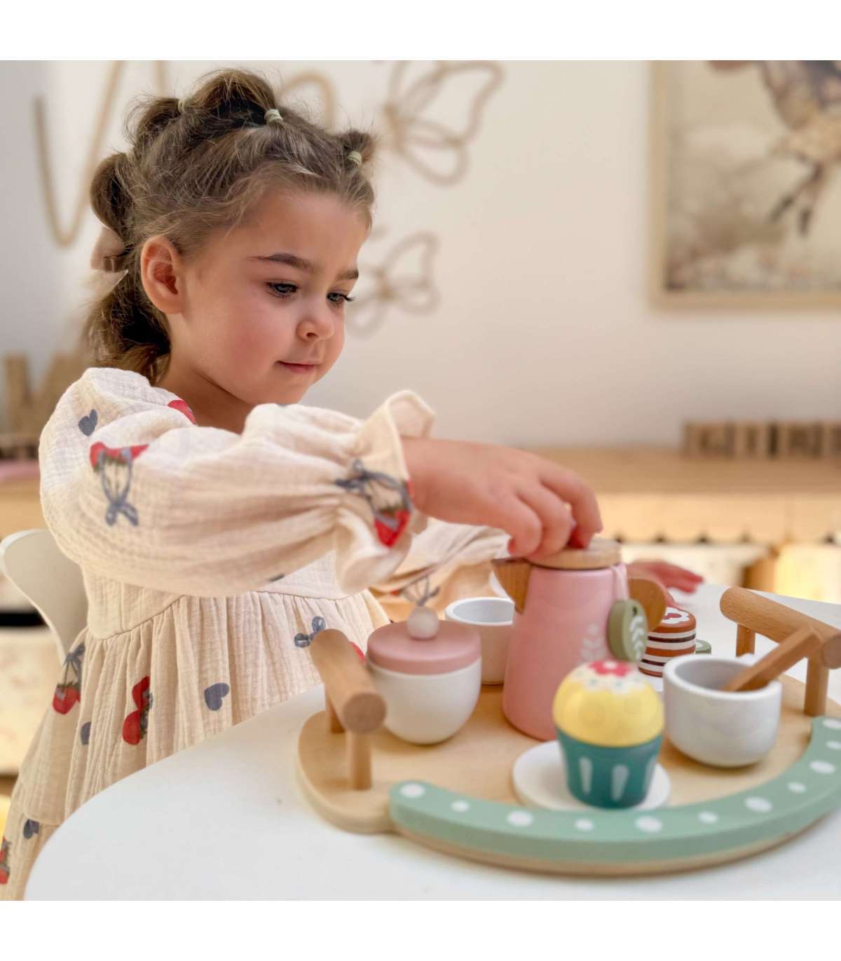 - - Kreatywność - Drewniane akcesoria (filiżanki, czajnik, ciastko...) pozwalają dziecku organizować własne przyjęcia herbaciane, eksperymentować z ustawianiem elementów, tworzyć nowe kombinacje i scenariusze bez sztywnych ograniczeń.