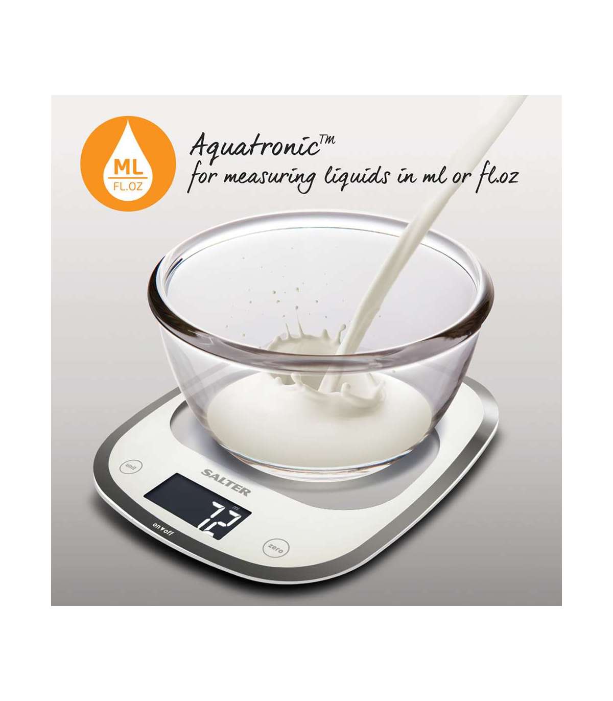 Aquatronic ™ funktsioon vedelike mõõtmiseks ml või floz.