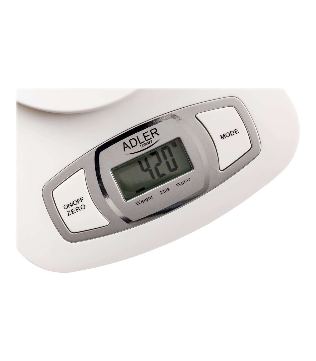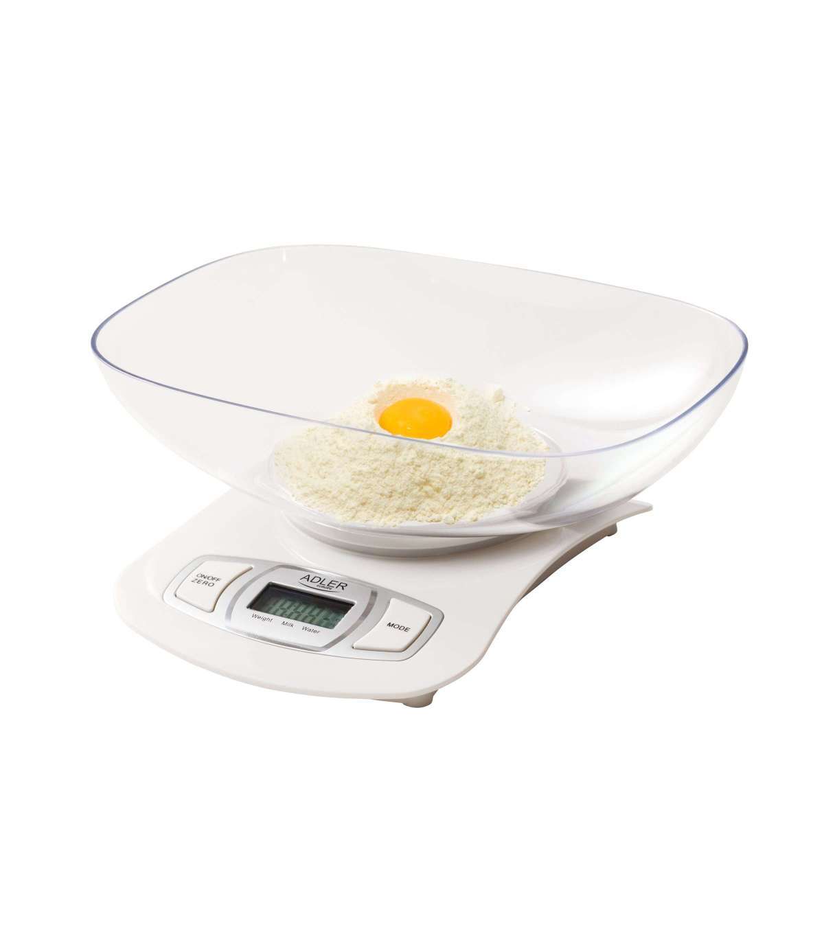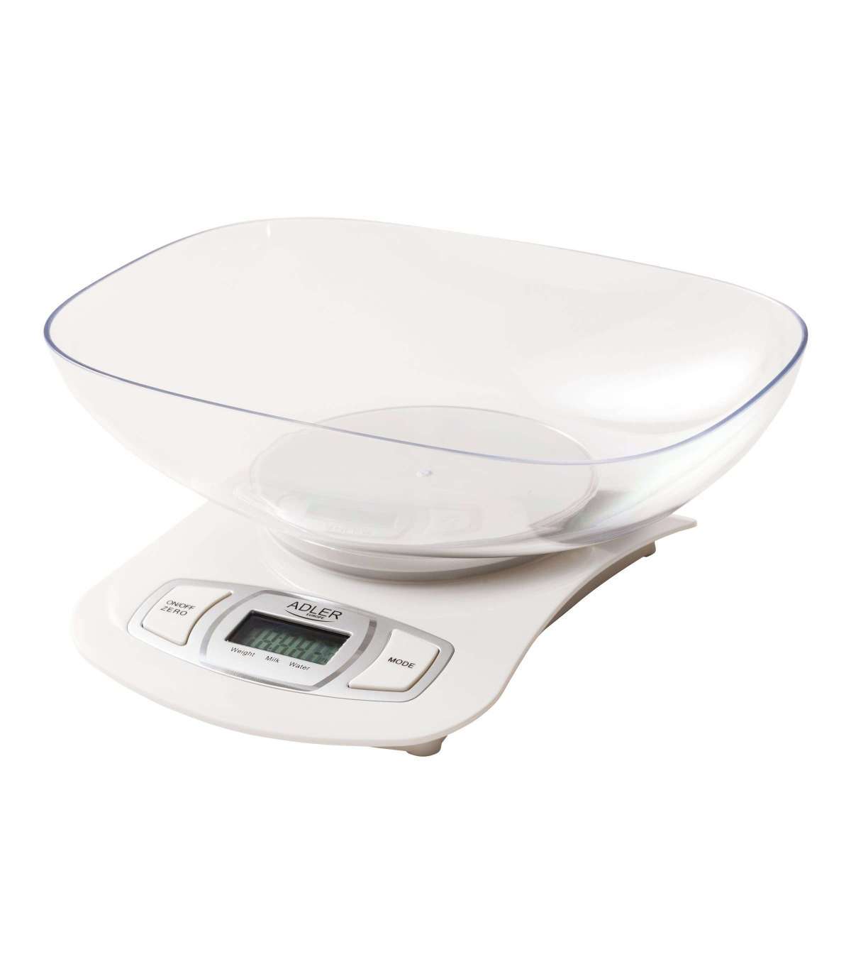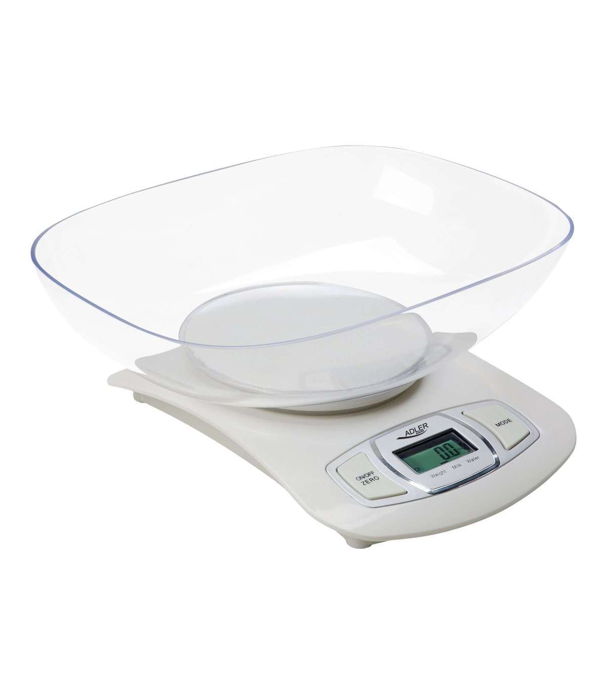 Adler AD 3137 Kitchen scales, Capacity 5 kg , Graduation 1g, Big LCD Display, Auto-zero/Auto-off, Large bowl, White |