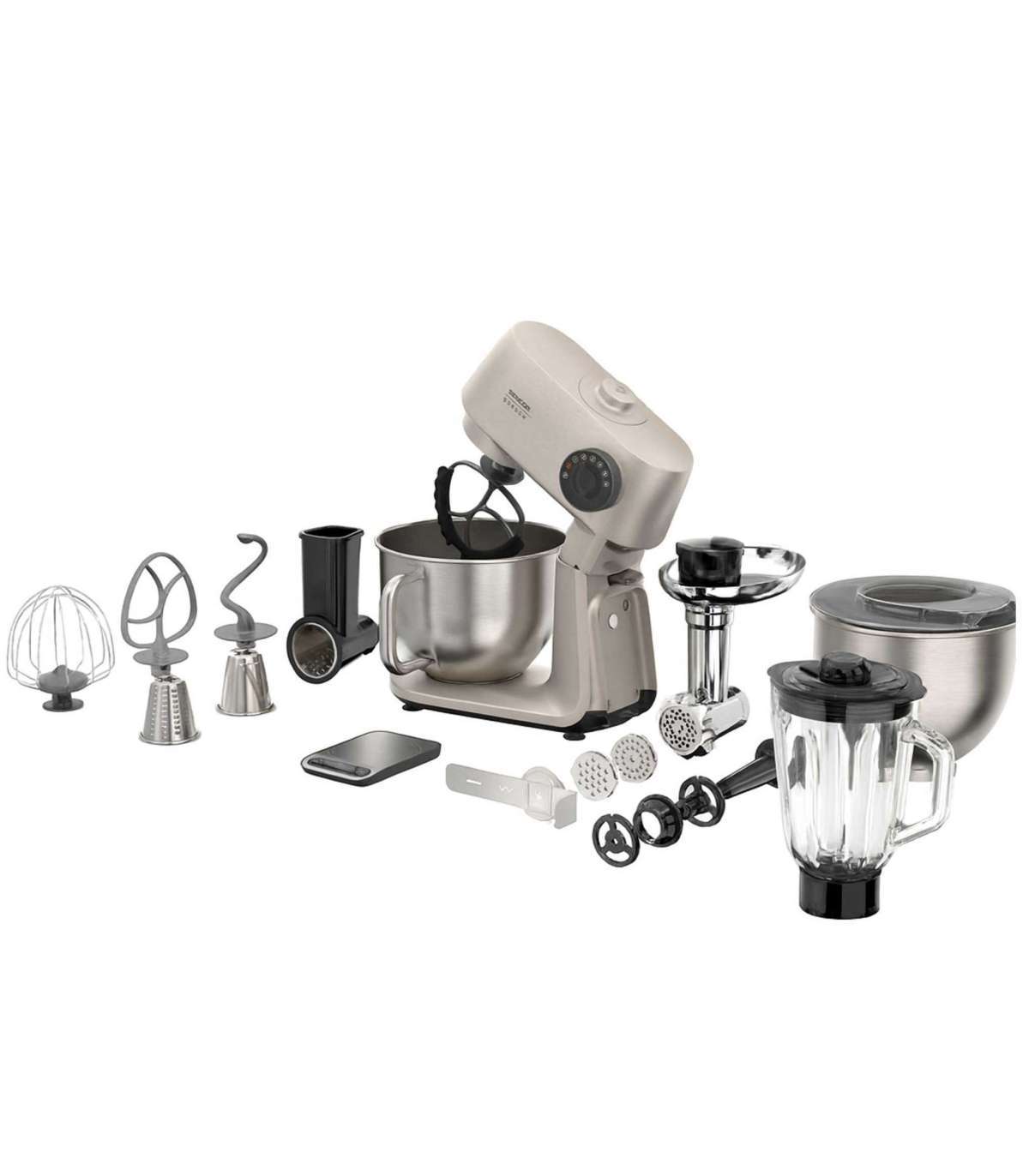 4 vahetatavat lisatarvikut tagavad tänu planetaarsele liikumissüsteemile sõtkumisel, segamisel ja vahustamisel kõigi kausis olevate koostisosade põhjaliku ja ühtlase töötlemise. Metallist vispel koogitaignale, metallist segamiskonks leivataignale ning roostevabast terasest vispel munavalgete vahustamiseks.
