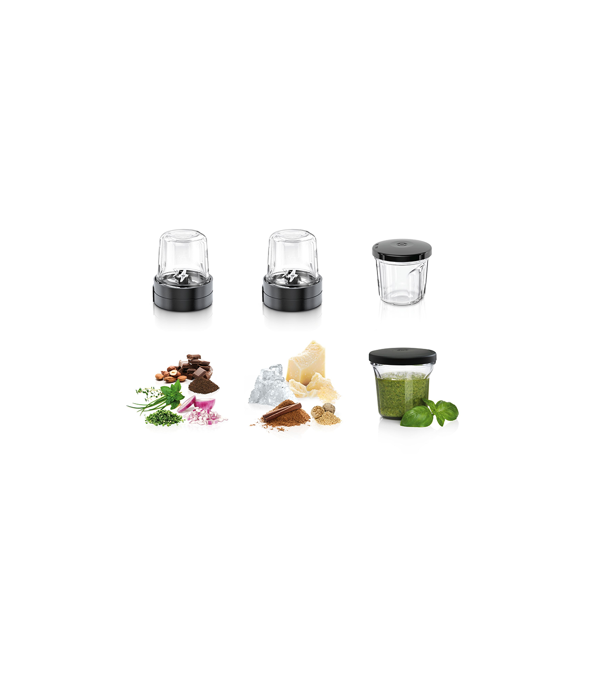 Kompaktne ja mitmekülgne seade hästi läbimõeldud kolme funktsiooniga: jahvatusseade, hakkimisseade ja praktiline sisseehitatud tarvikute hoiukoht