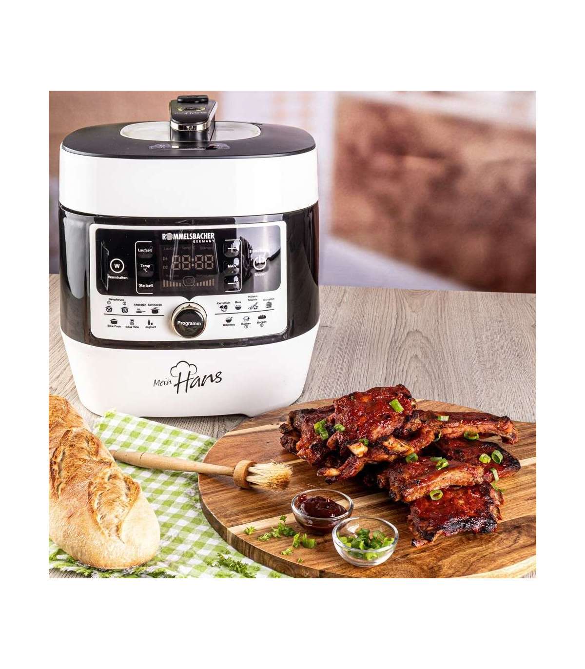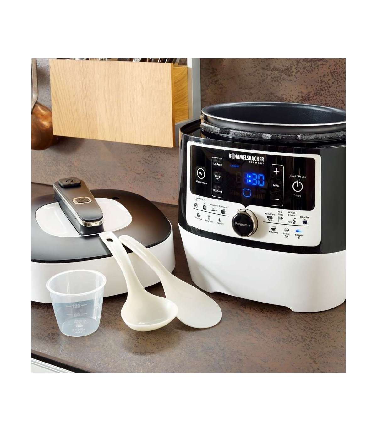 Rommelsbacheri digitaalne multifunktsionaalne kiirkeetja aitab säästa aega, energiat ja ruumi: universaalne seade asendab kuni 9 köögiseadet. Sellega saate küpsetada, aurutada, röstida ja hautada, valmistada kreemjat riisipudingut või jogurtit ning küpsetada leiba või kasutada seda tänapäevaste toiduvalmistamisviiside jaoks, nagu "Sous Vide" ja "Slow Cooking".