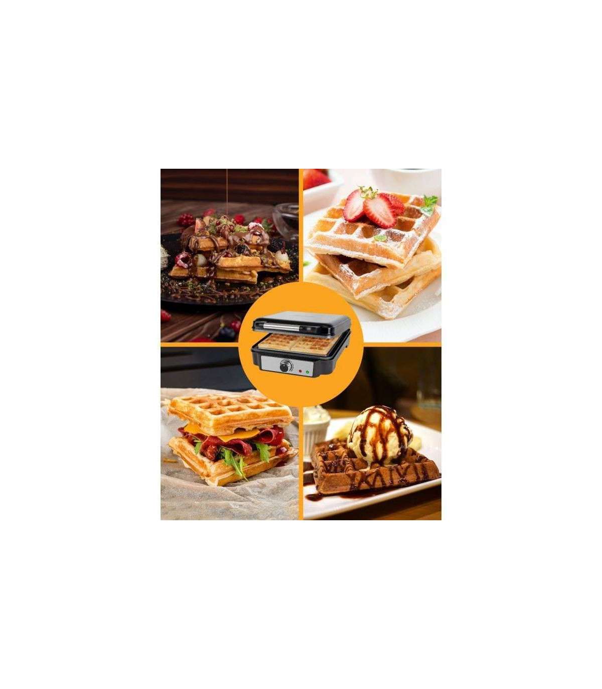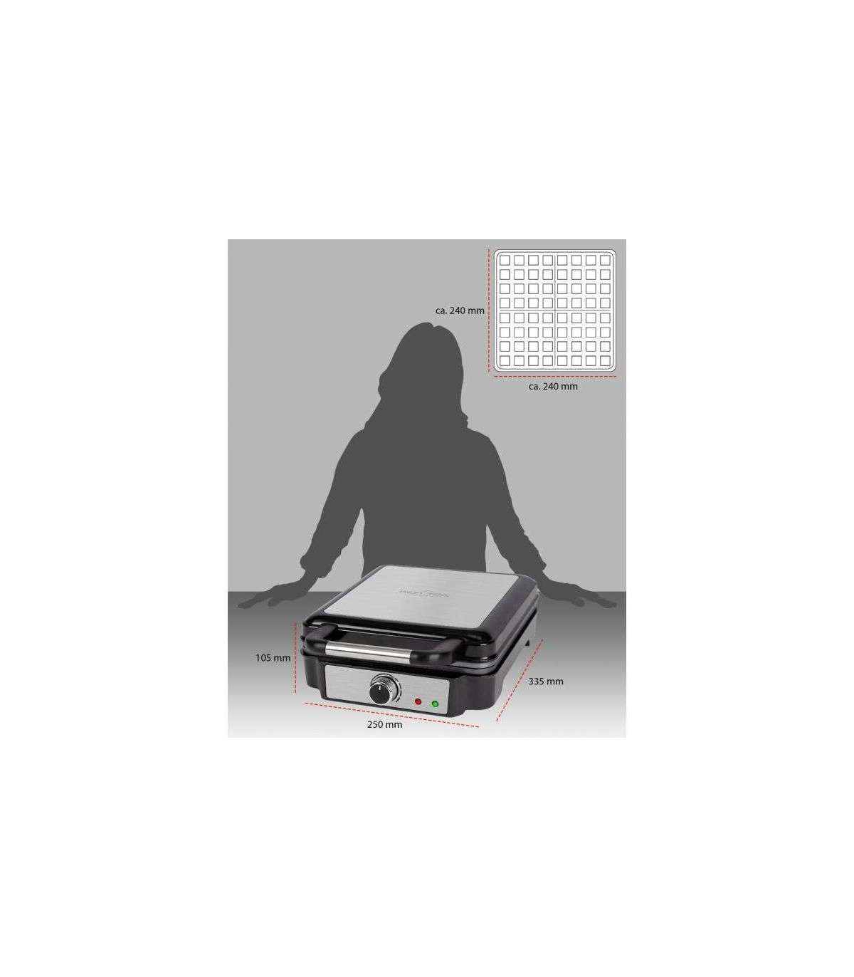 Suur 24 x 24 cm küpsetuspind korraga nelja kandilise vahvli valmistamiseks. Astmeteta reguleeritav pruunistusaste kohandub teie vajadustega. Indikaatortuli näitab, kui ideaalne küpsetustemperatuur on saavutatud ning millal vahvlid on valmis. Mittenakkuvad küpsetuspinnad ja liigset tainast kinni püüdev soon muudavad puhastamise lihtsaks.