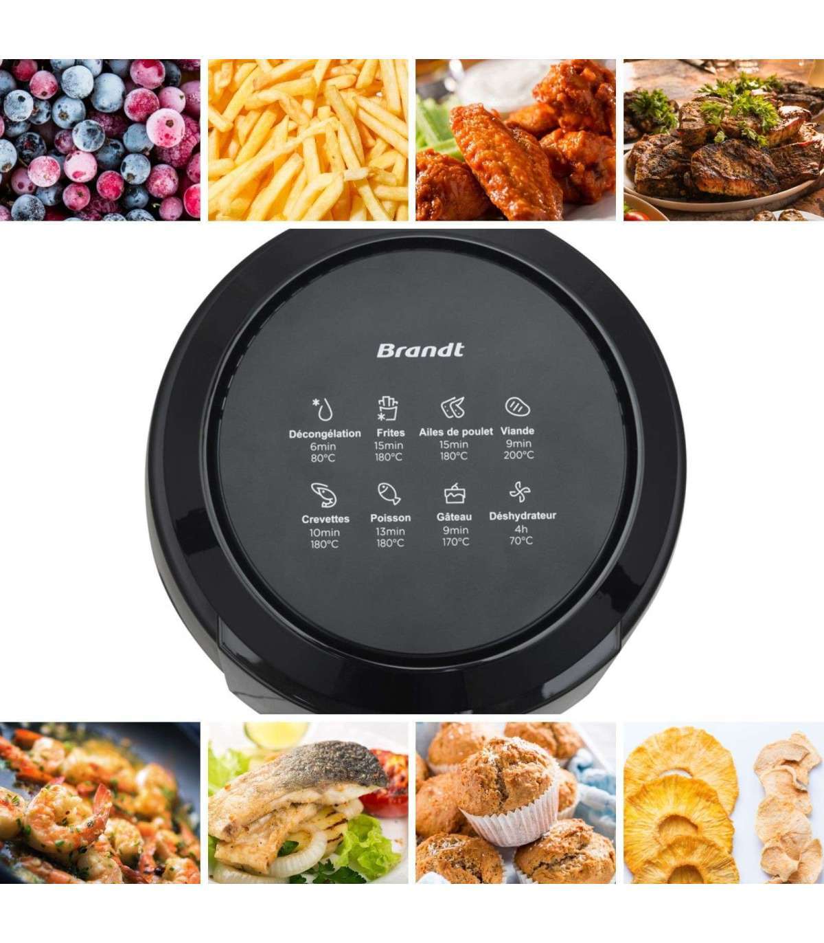 8 automaatset programmi: Sulatamine, friikartulid, kanatiivad, liha, krevetid, kala, küpsetised, dehüdratsioon.