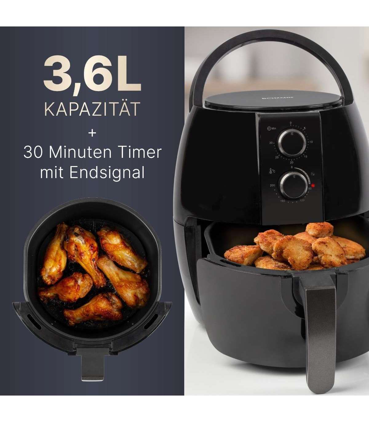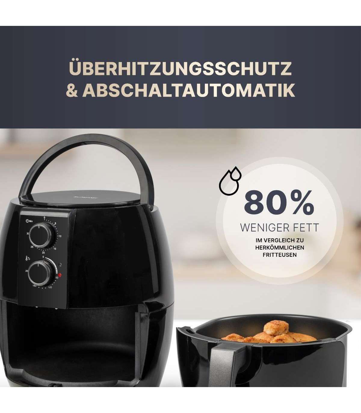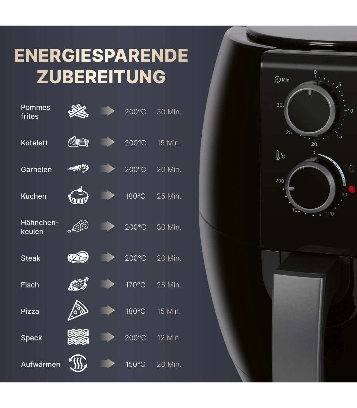 Pidevalt reguleeritav termostaat (80 °C - 200 °C) ja lõppsignaaliga taimer võimaldavad täieliku kontrolli.