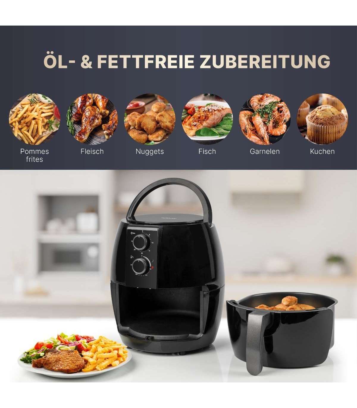 Lummava disainiga Bomann FR6057HCB kuumaõhufritüüriga saab valmistada tervislikke toite, vältides peaaegu täielikult õli ja rasva.