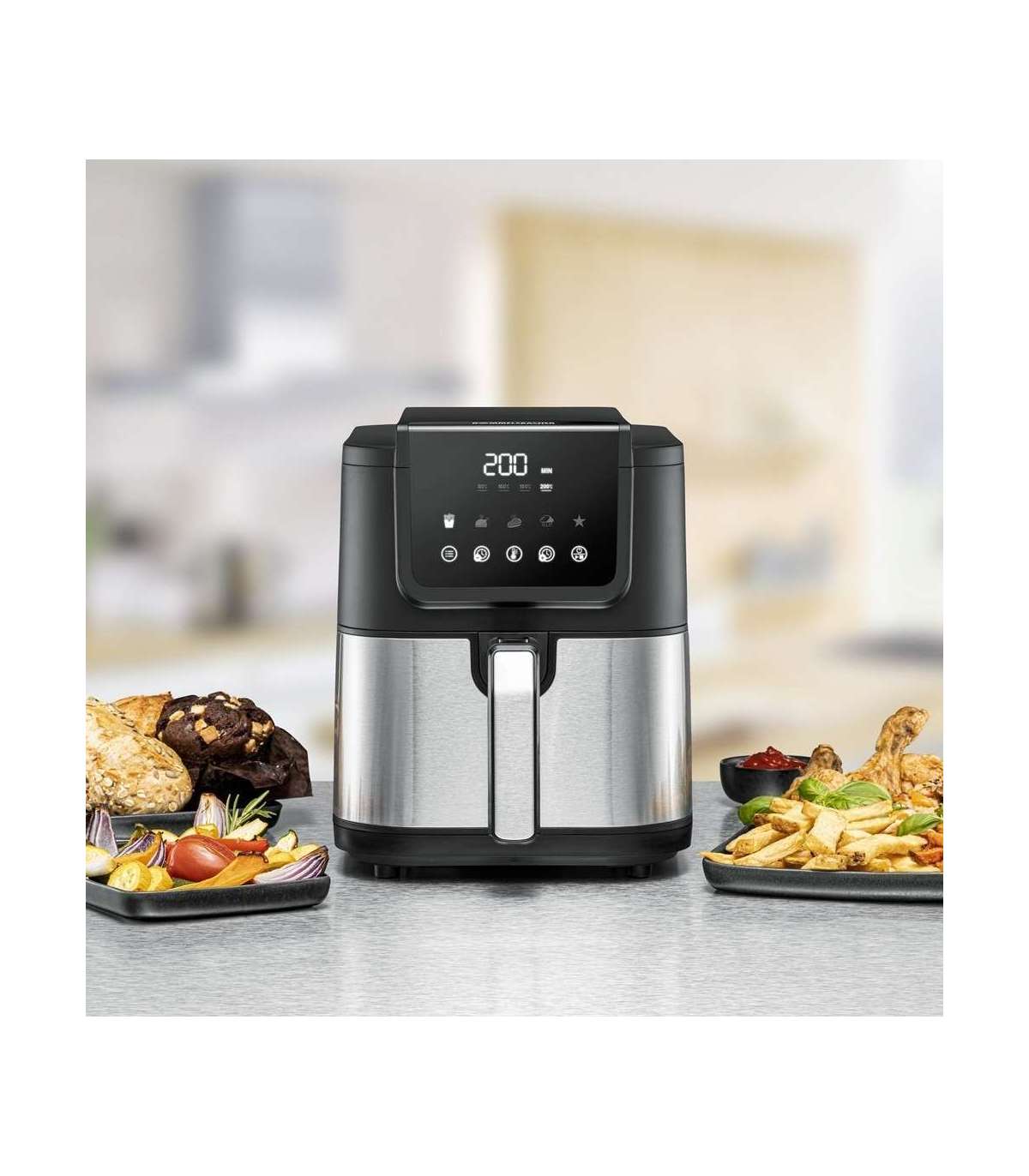 - intuitiivne juhtimine Touch Control andurite kaudu – piisab kergest puudutusest, selge LED-ekraan, 60-minutiline taimer, 5 programmi, temperatuur valitav vahemikus 80°C kuni 200°C, võimalik individuaalne salvestus