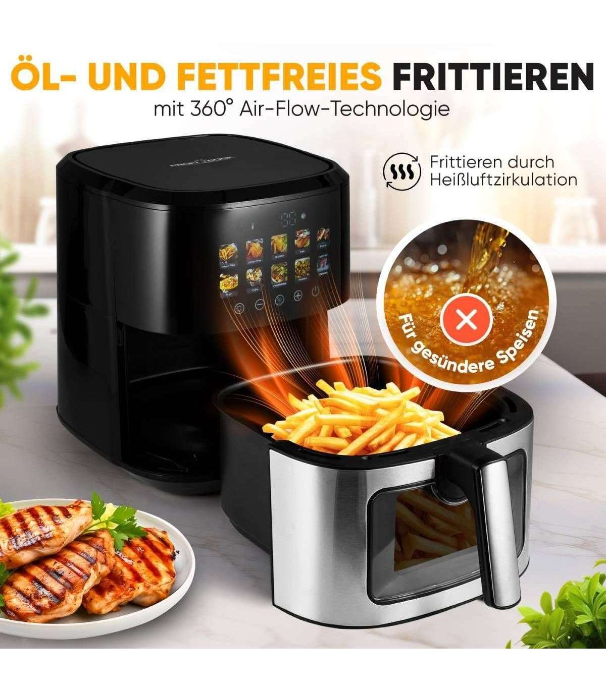 ProfiCook® kuumaõhufritüür PCFR1286H lemmikroogade tervislikuks ja maitsvaks valmistamiseks ilma õli ja rasvata.