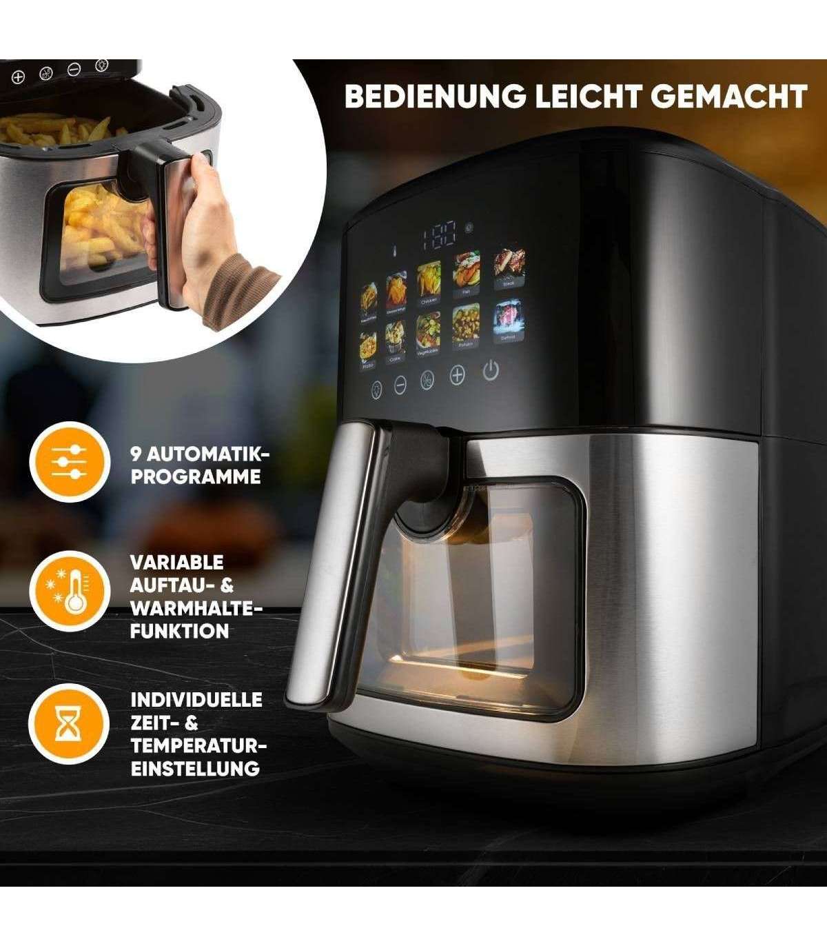 6,5-liitrise mahuga fritüür sobib ideaalselt peredele ja suurte portsjonite valmistamiseks. Tänu kuuma õhu tehnoloogiale saab toitu praadida peaaegu ilma õlita, toetades seeläbi tervislikumat toitumist.