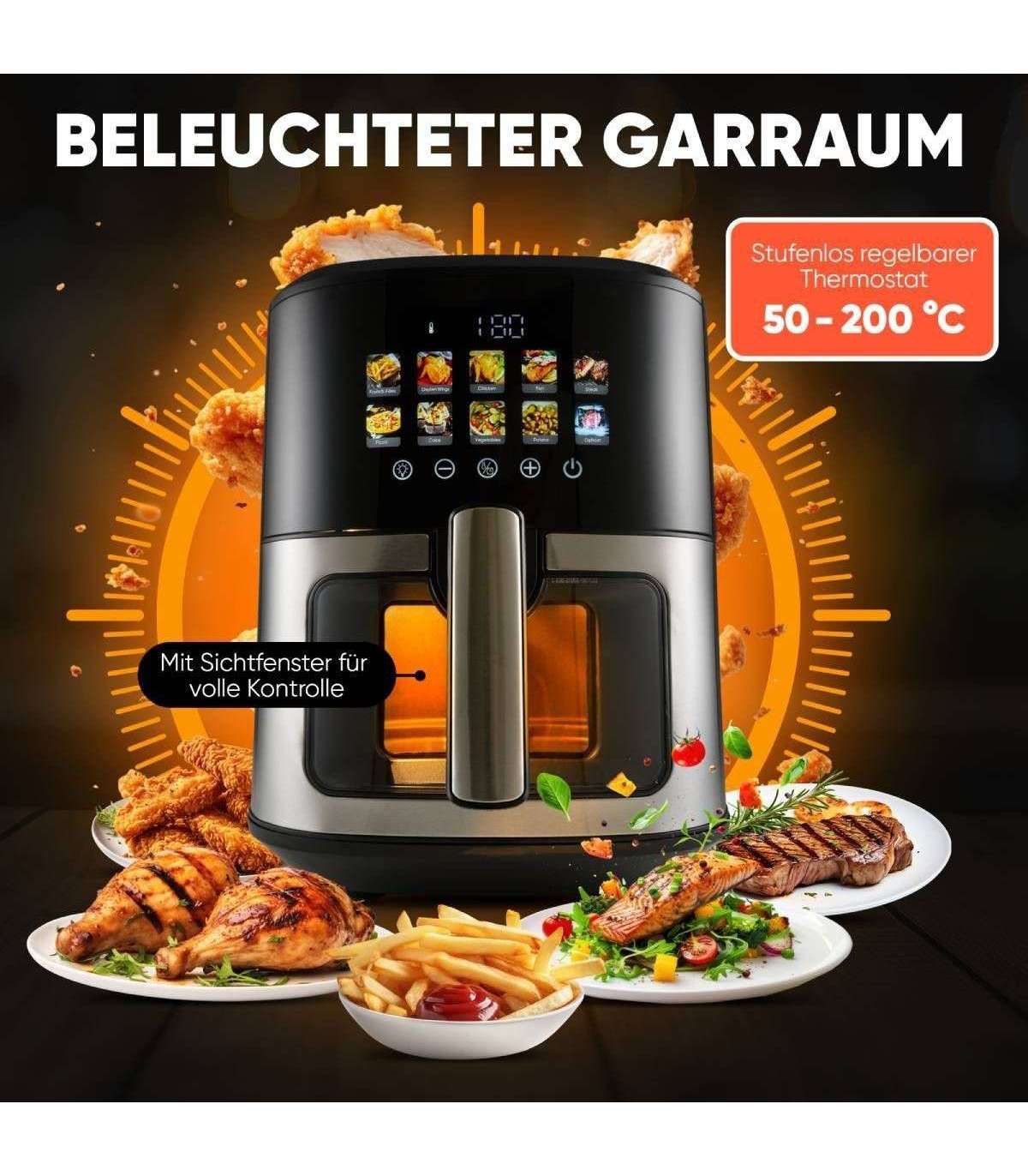 Friteerimiskamber on valgustatud ja küpsetamist saab jälgida läbi soojusisolatsiooniga vaateakna