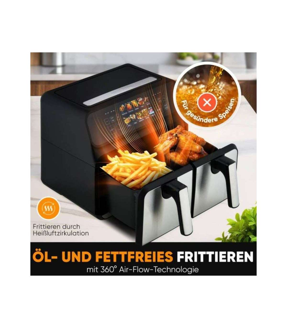 Kogumahuga 8 liitrit (2x 4 liitrit) pakub see piisavalt ruumi kogu perele. Tänu õli- ja rasvavabale toidu valmistamisele saab nautida oma lemmikroogasid tervislikult. 2 eraldi praeanumat võimaldavad valmistada kahte erinevat rooga korraga ilma, et maitsed seguneksid.