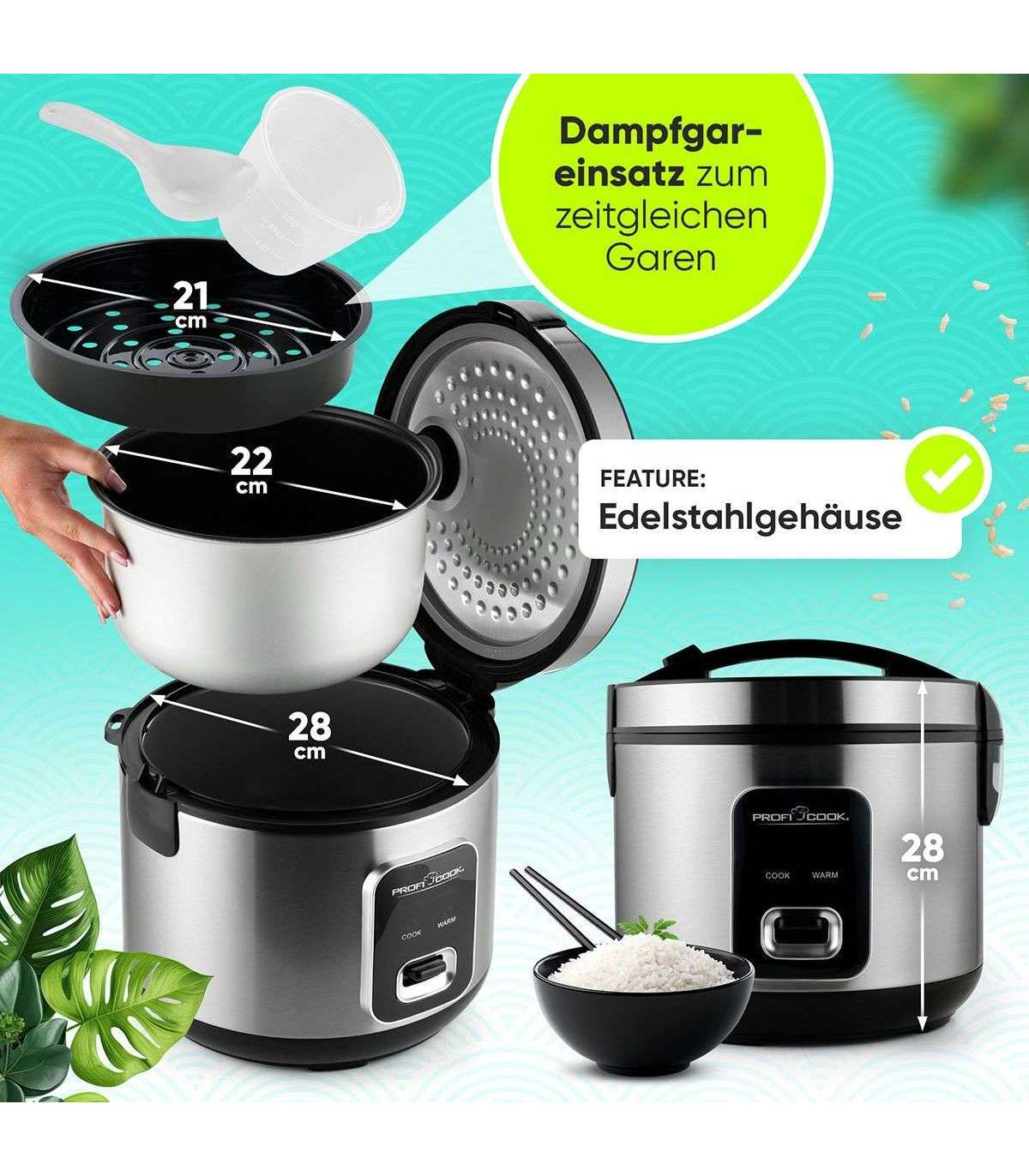 Suur sisepott mahutab kuni 3 kg keedetud riisi ja sobib kõikidele riisiliikidele. Tänu mittenakkuvale sisepinnale on puhastamine eriti lihtne.