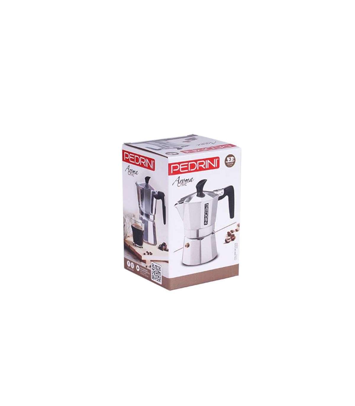 Pedrini Coffee Maker polished Aluminum 3 Cups silver black (9083-3) (90833)