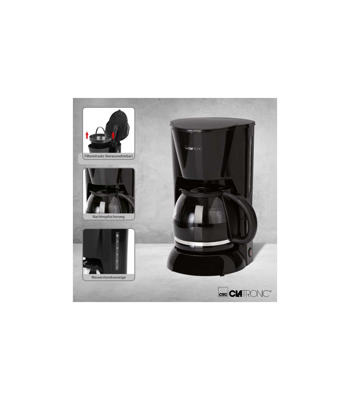 Lihtsa disainiga Clatronic filterkohvimasin 12-14 tassi kohvi valmistamiseks.