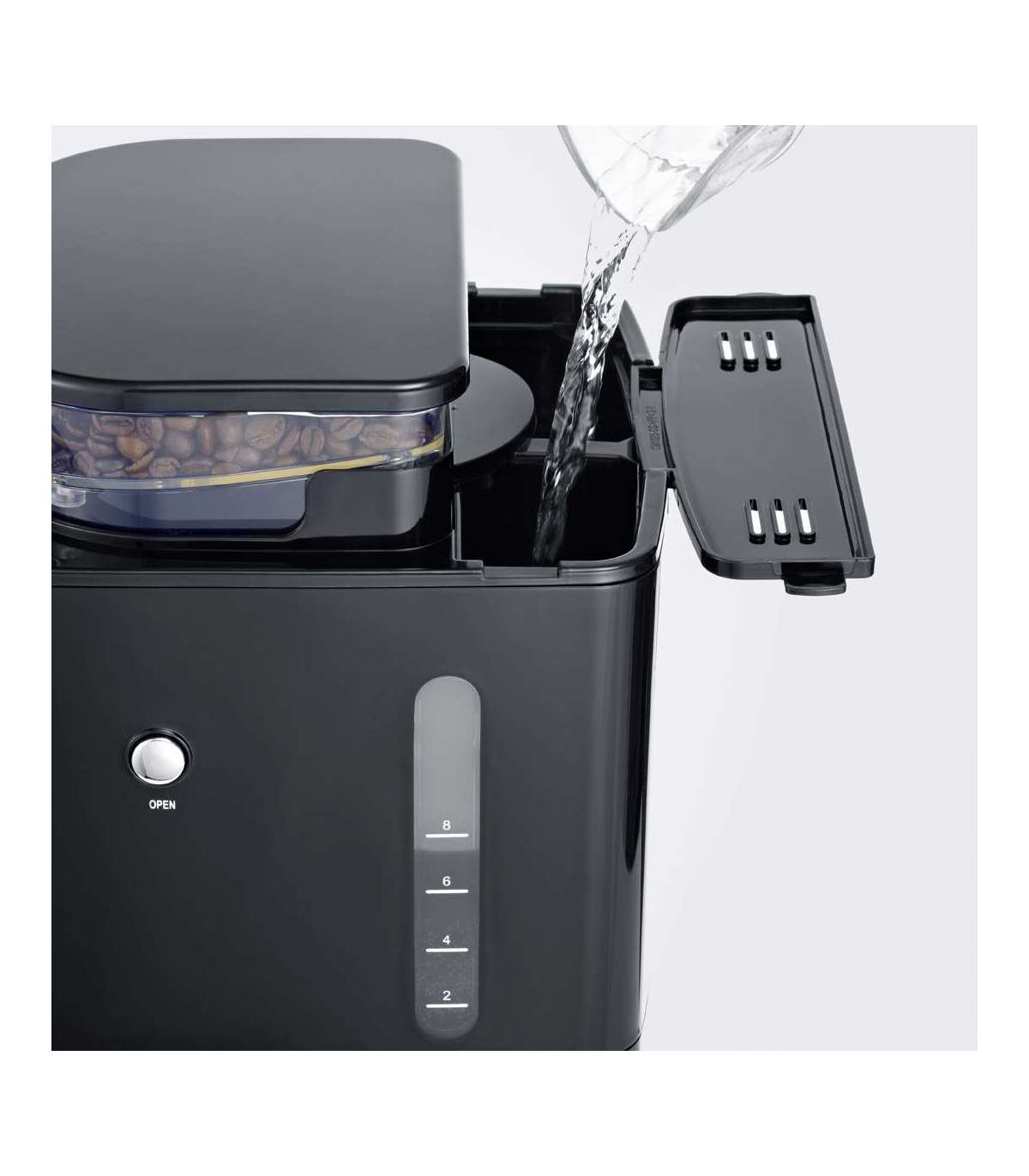 õitsev funktsioon: niisutab kohvi enne keetmist - täieliku maitse saavutamiseks