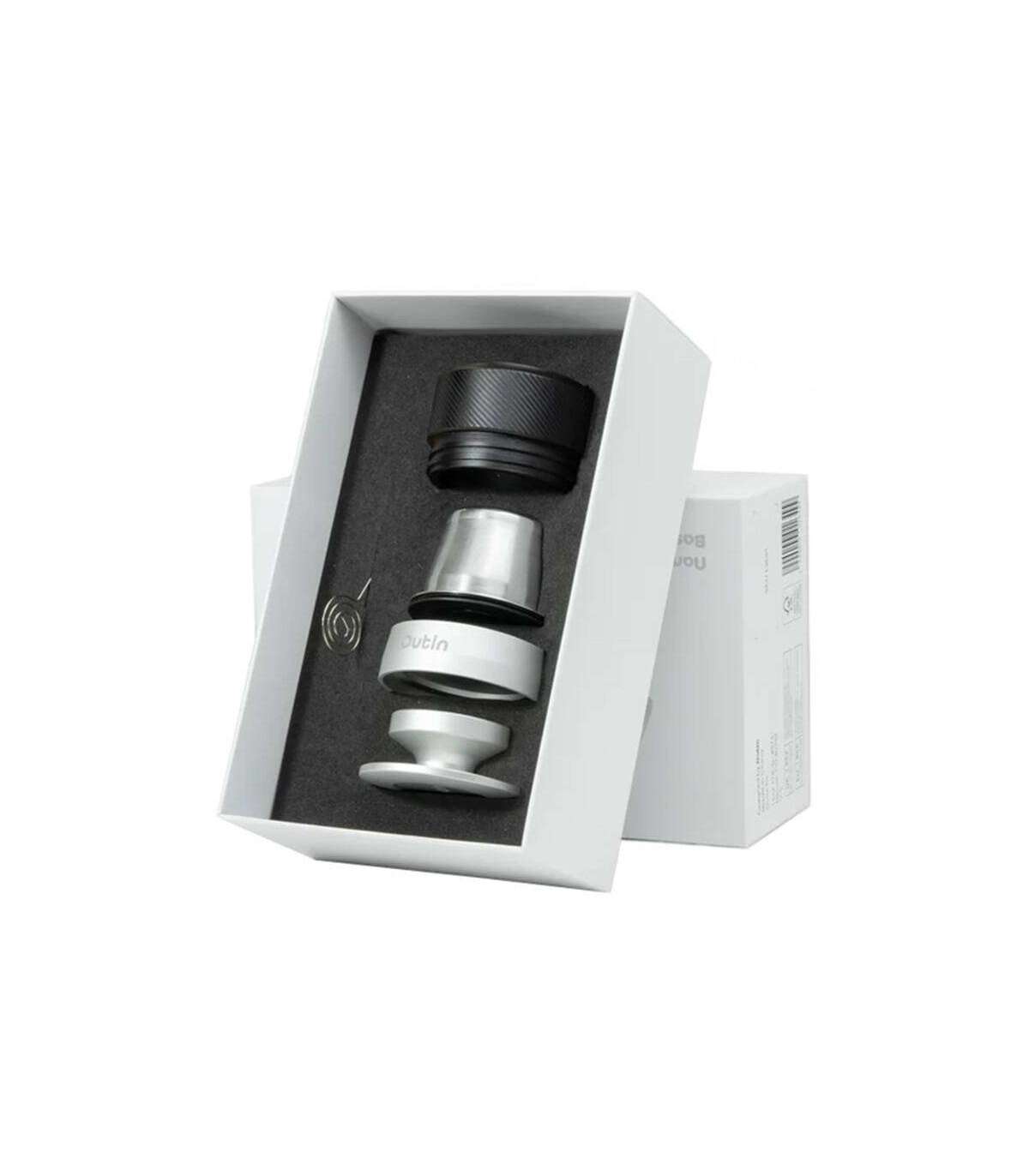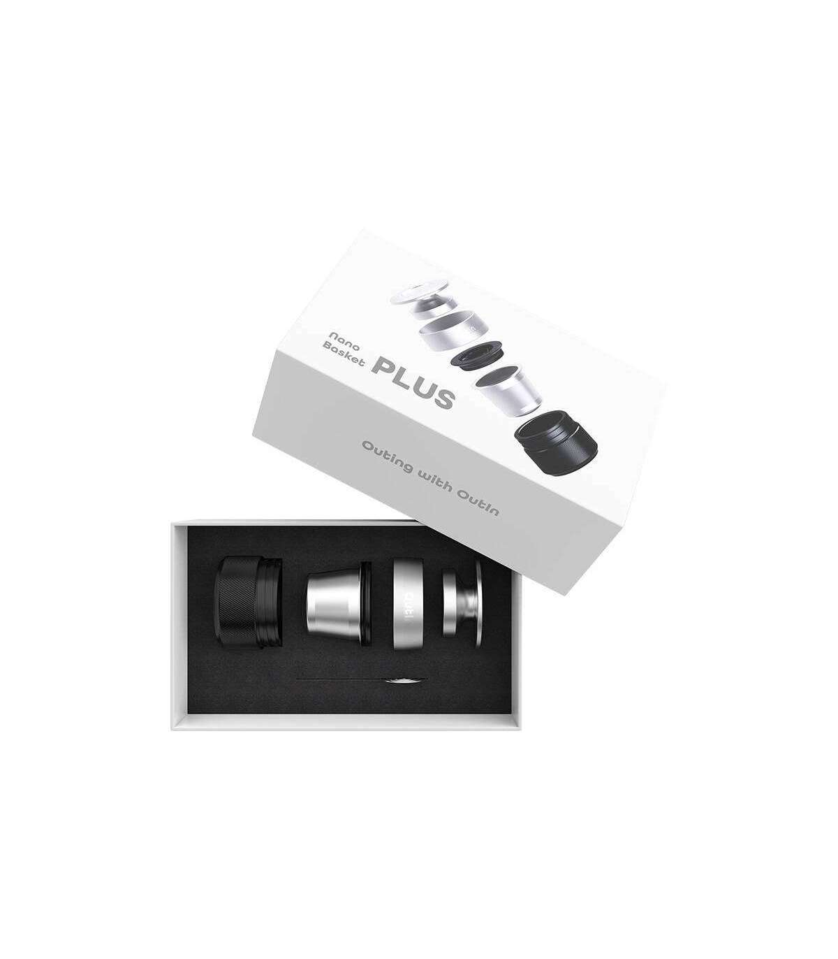 Enhance the capabilities of your Outin Nano espresso machine. The Outin Basket Plus kit consists of a tamper, dispenser, ground coffee filter, flask and coffee distribution tool. It allows you to prepare double servings of espresso with even more intense flavor. The increased capacity for ground coffee (16-18 g) allows you to brew coffee with a richer flavor and aroma profile. The products are made of high-quality food-grade stainless steel.