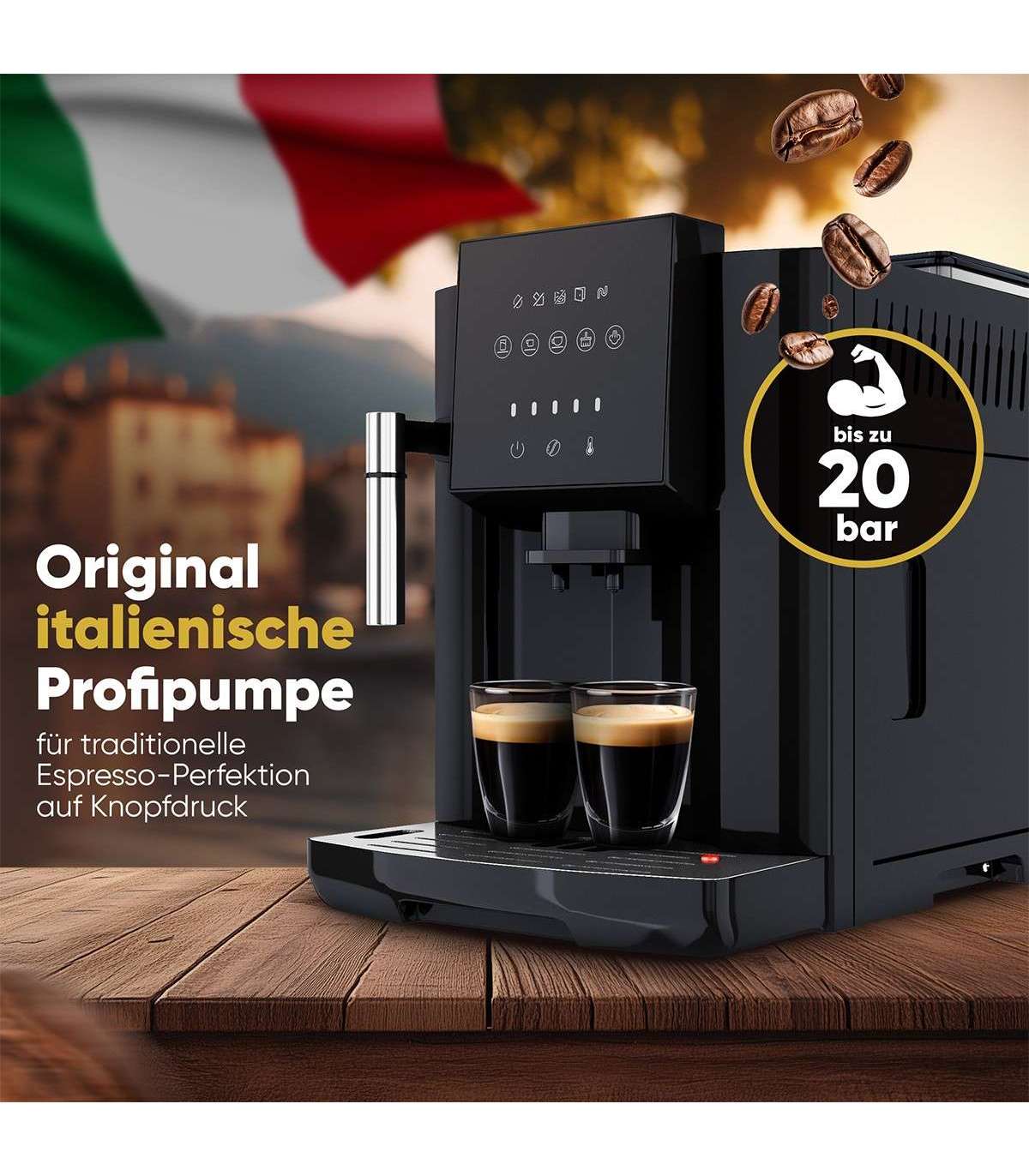 Must kohvi ja espresso valmivad ühe nupuvajutusega. Piima saab eraldi vahustada, et valmistada piimaga kohvijooke - Caffè Latte, Macchiato, Cappucino, Americano jm.