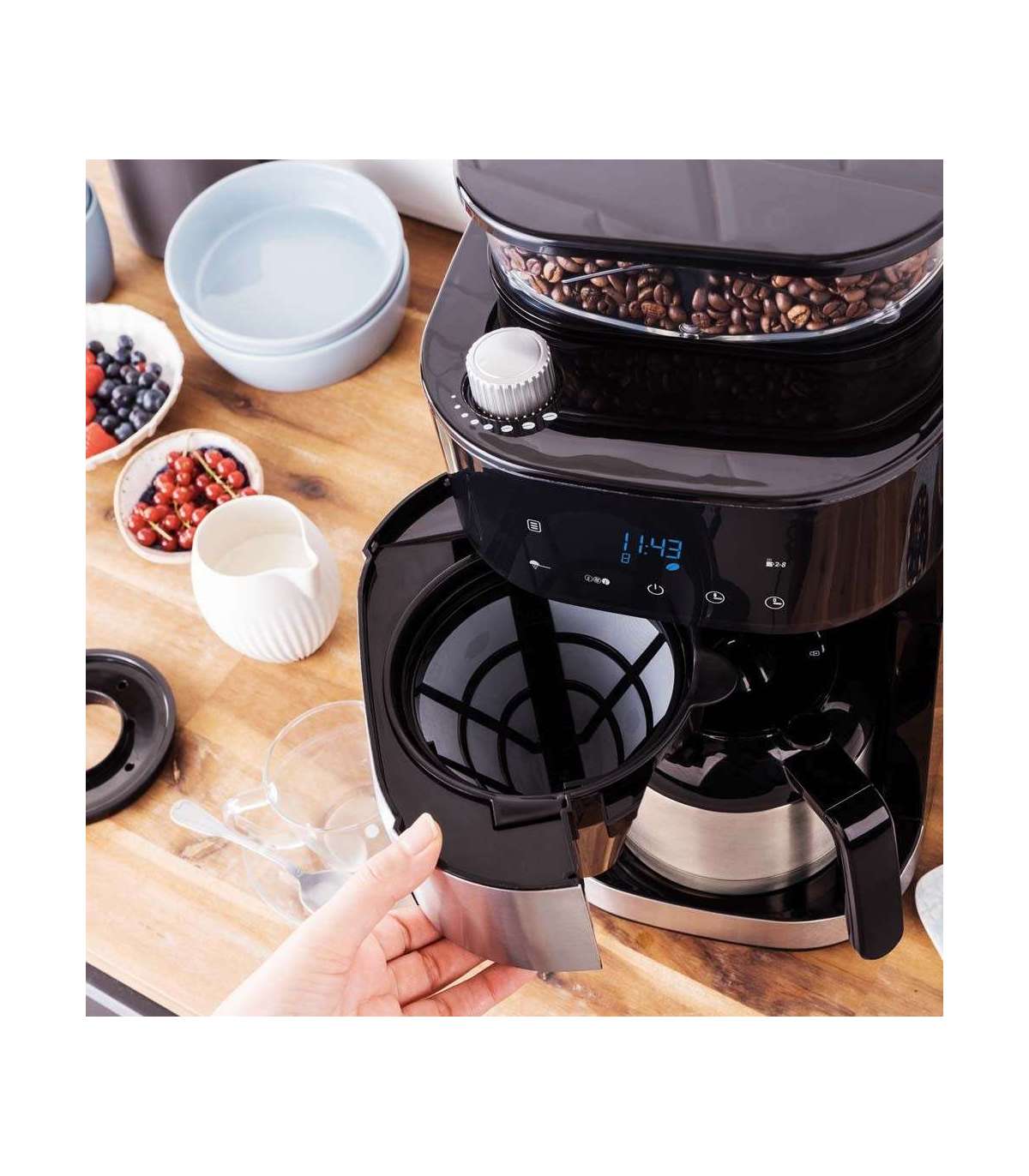 - Built-in grinder