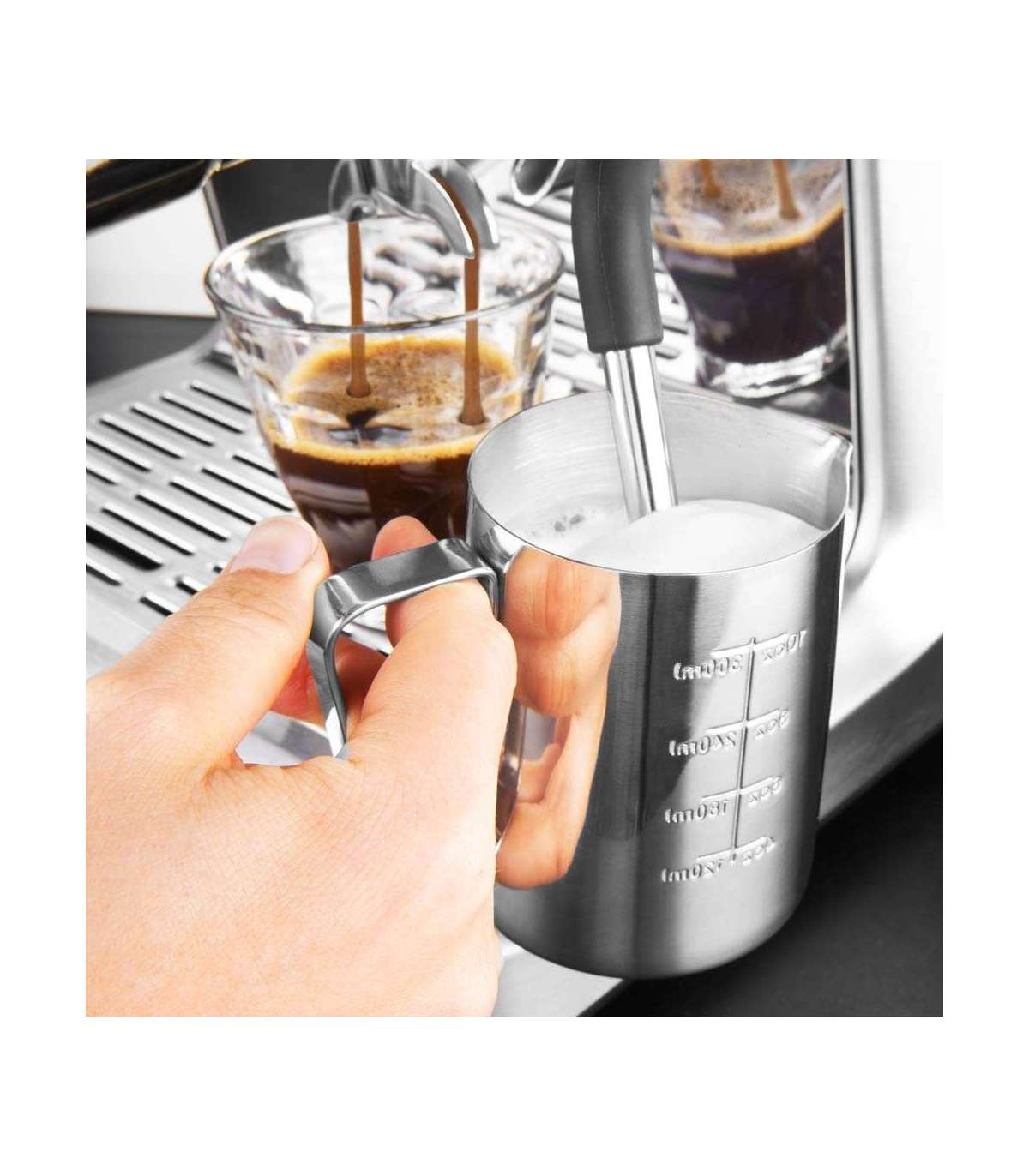 Sisaldab järgmisi tarvikuid: Professionaalne roostevabast terasest espresso tamper, ühe seinaga filtrisisustus 1 ja 2 tassi jaoks, piimavahukann, puhastustööriist