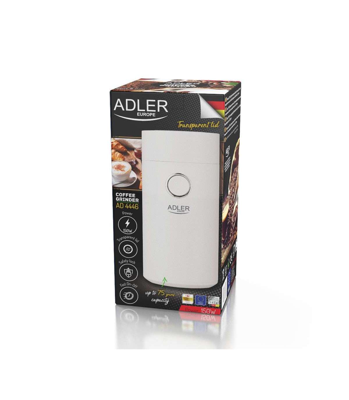 Adler Coffee Mill AD 4446ws 150 W Coffee beans capacity 75 g White