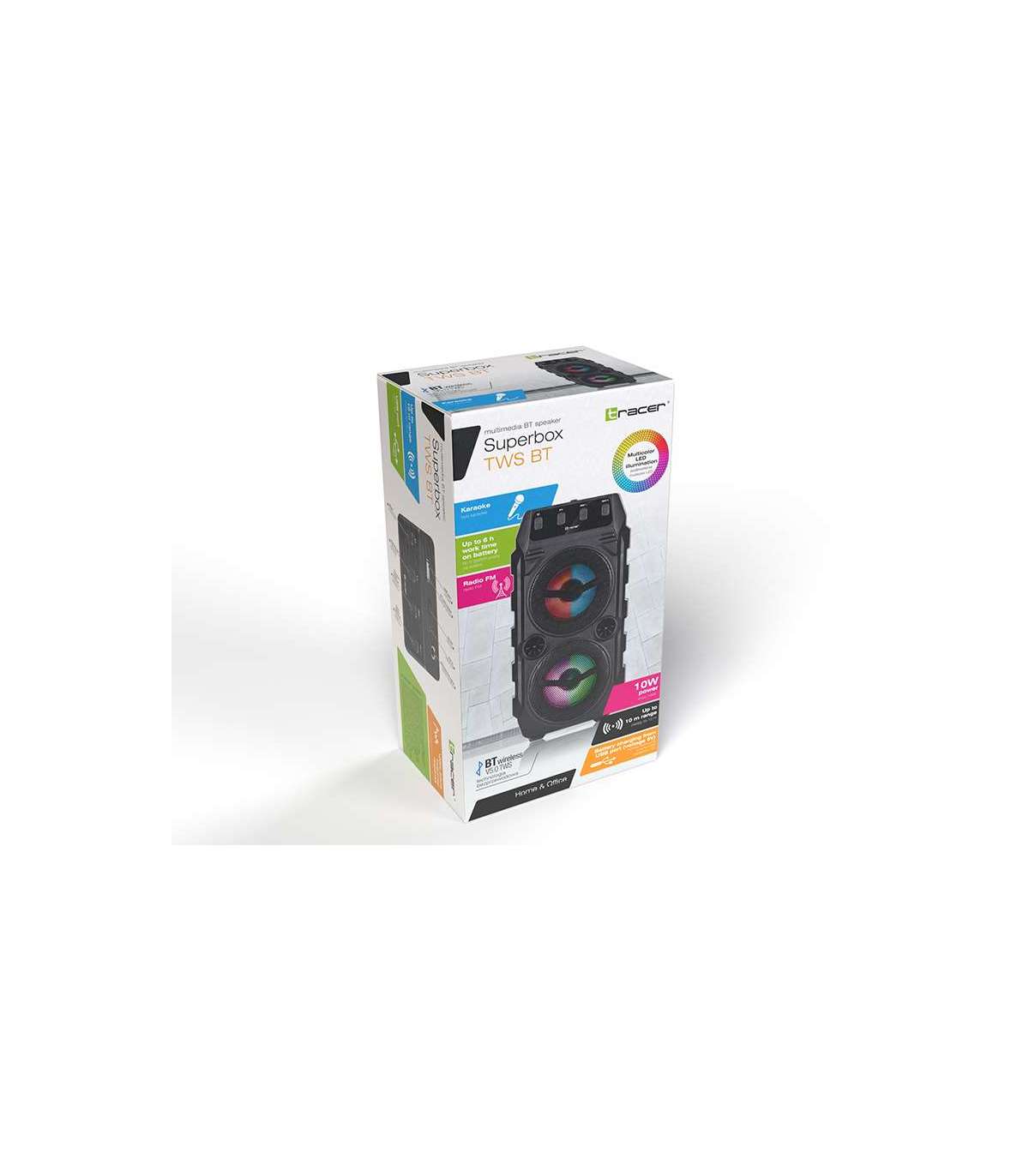 Tracer Superbox on kvaliteetne juhtmevaba kõlar 10 W võimsusega. See seade oli mõeldud neile, kes armastavad võimsat heli ja selget bassi. Esitage oma lemmikmuusikat Bluetooth-seadmetest - tahvelarvutitest, nutitelefonidest, mp3-mängijatest või sülearvutitest - nautige juhtmevaba töötamist ja veatu heli.