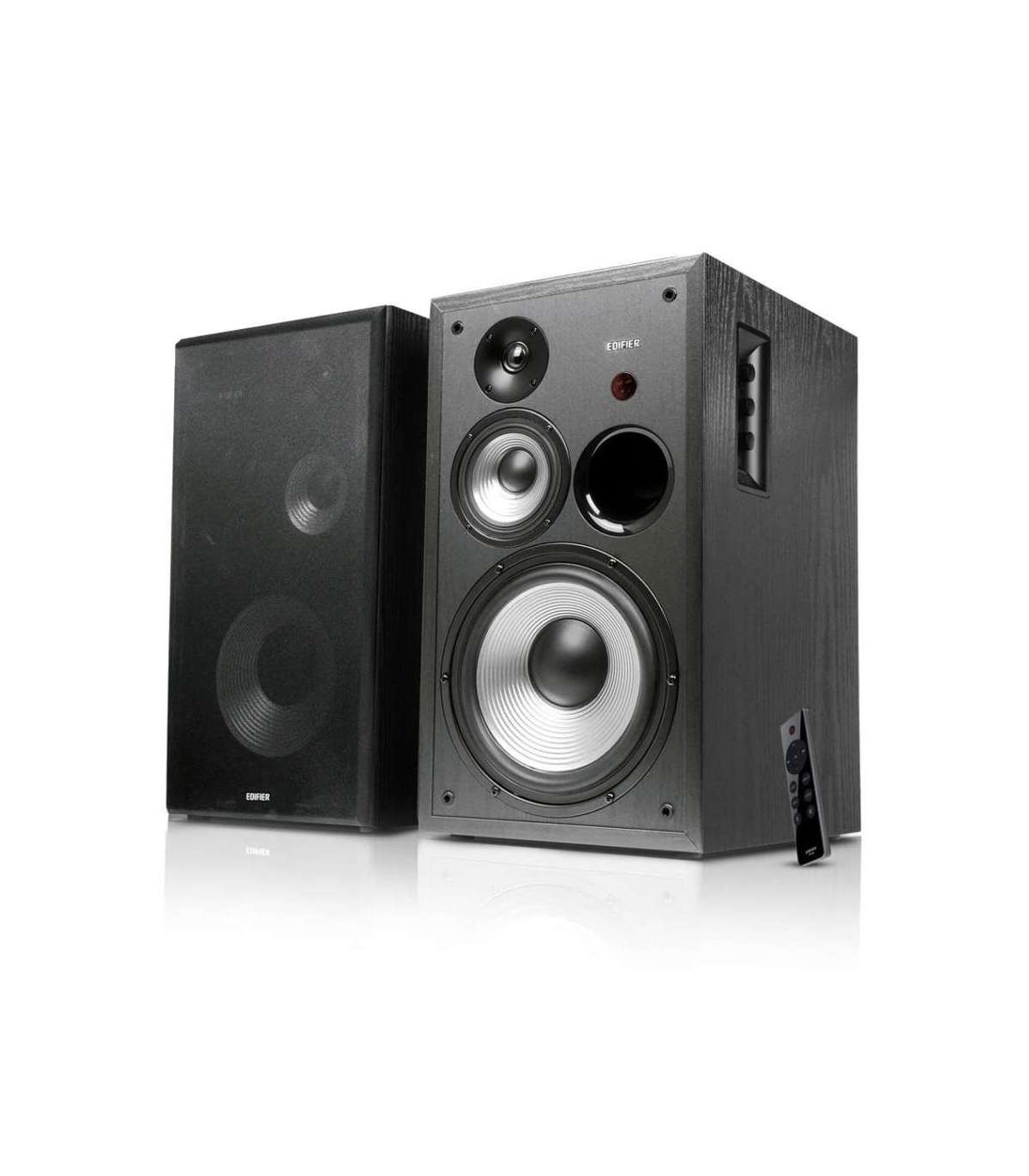 - Simply turning the button on the side panel of the Edifier R2850DB speakers to adjust volume, treble and bass timbres, and signal sources