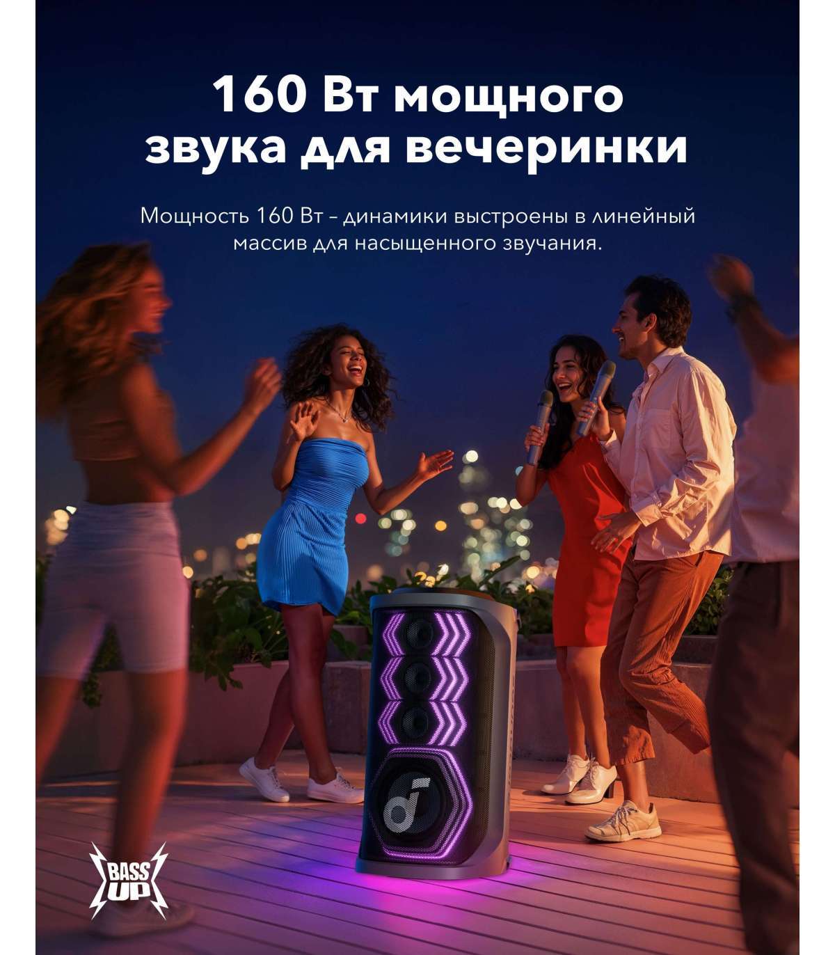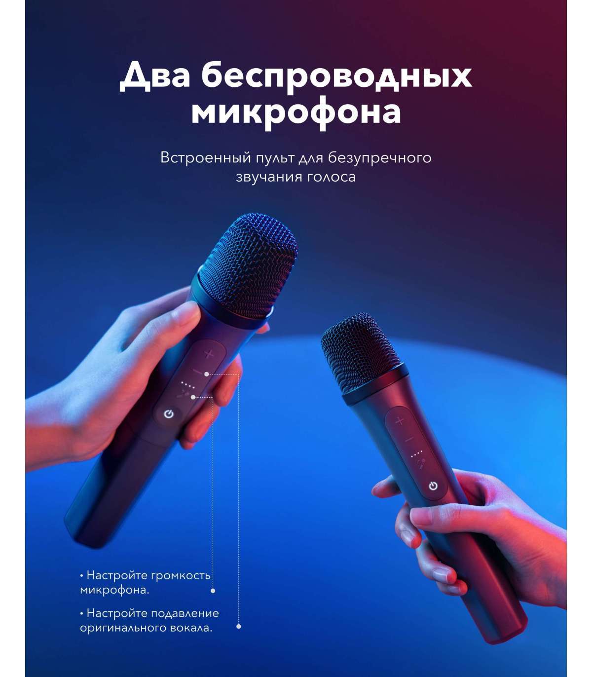 - Dynamic light show; 2 wireless microphones