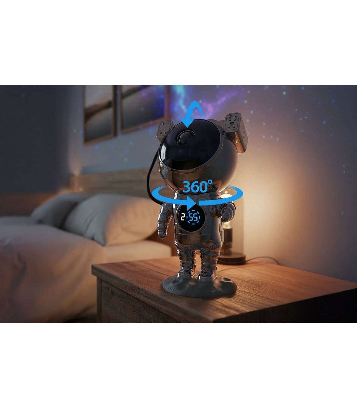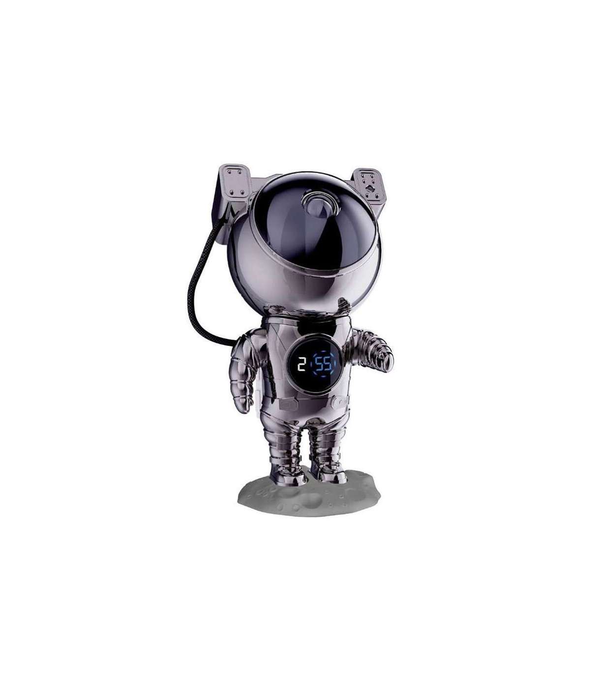See astronaut-täheprojektor kellaga on moodne seade, mis ühendab funktsionaalsuse ainulaadse disainiga. Selle kroomviimistlus teeb sellest mitte ainult projektori, vaid ka futuristliku sisekujunduse elemendi. Realistliku tähtede ja värviliste udukogude projektsiooniga muutub iga ruum atmosfääriliseks kosmiliseks ruumiks.