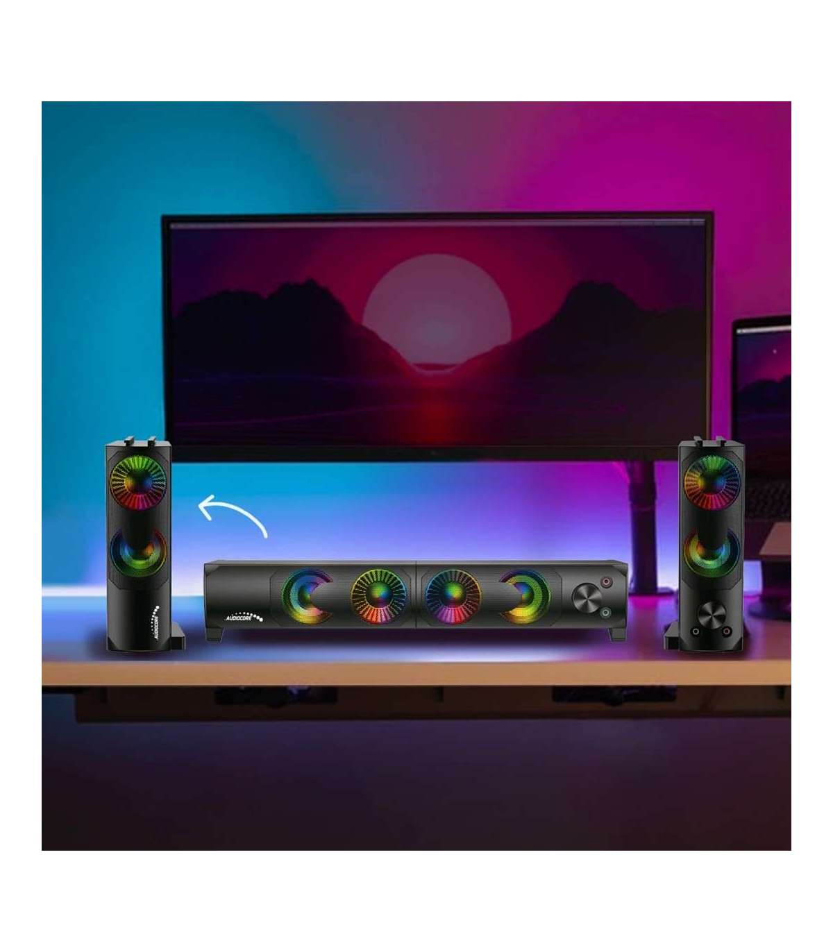 2 in 1 PC Speaker Soundbar Computer RGB LED Backlight Stereo Gaming USB 2 x 3W AUX 3.5 mm