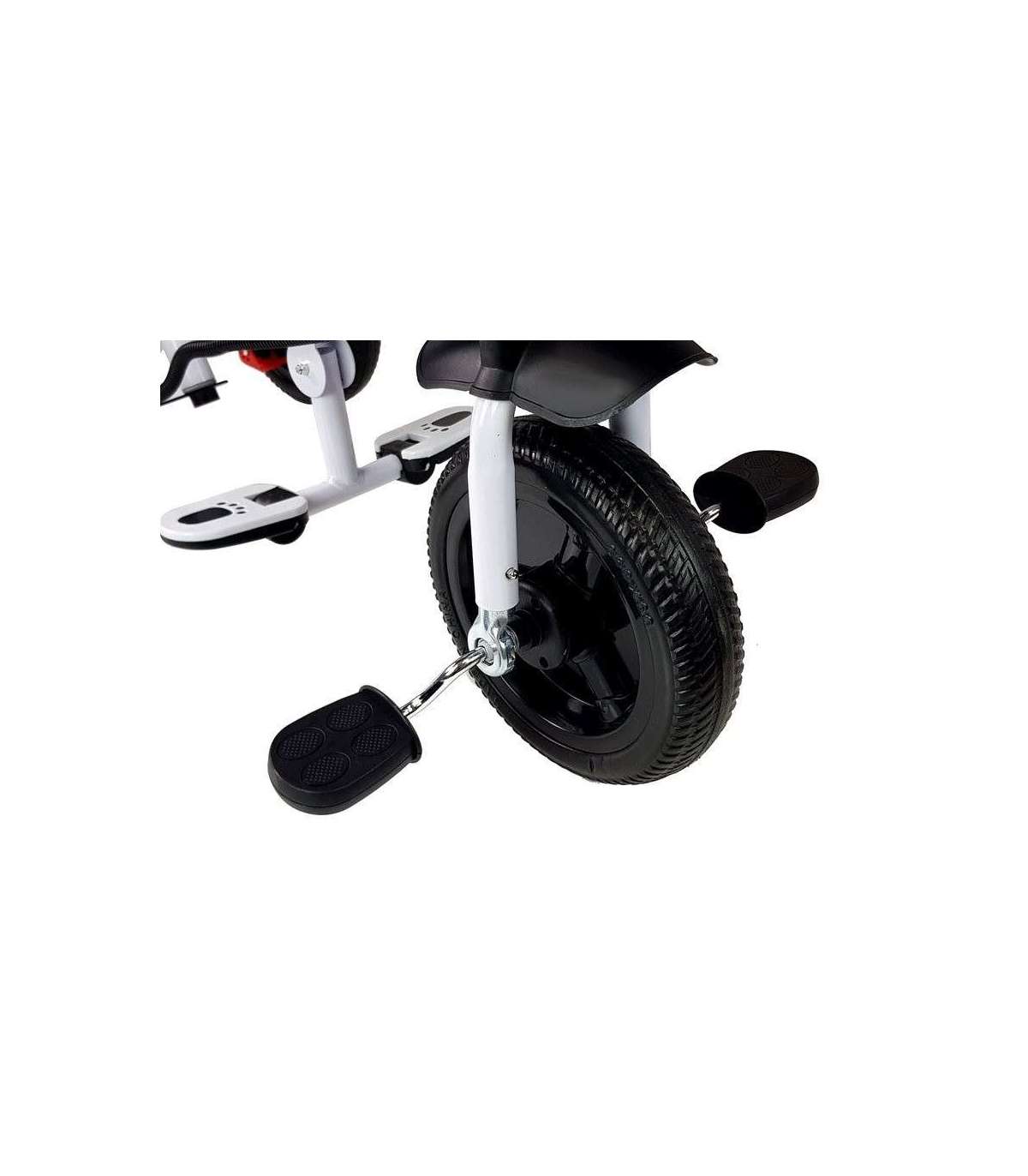 The design of the bicycle includes a spacious basket for shopping or baby's treasures, placed between the rear wheels, and a small zipper bag on the guide for parents - these details facilitate all-day rides and trips. Thanks to the soft foam railing, your child will be completely safe during walks and will not fall out of the seat. Additionally, it is possible to turn the child's seat towards you and ensure its safety. There is also a trumpet bell on the steering wheel, which your child will be able to confidently communicate to others that he is going. A three-wheeled bicycle for children is intended for all babies from 6 to 60 months of age, whose weight does not exceed 25 kg. It is made of a durable and resistant material that guarantees long life and comfort of use. The bike has soft EVA wheels. The tricycle for children is packed in the original cardboard box, inside which there are screws, tools and instructions that facilitate self-assembly.