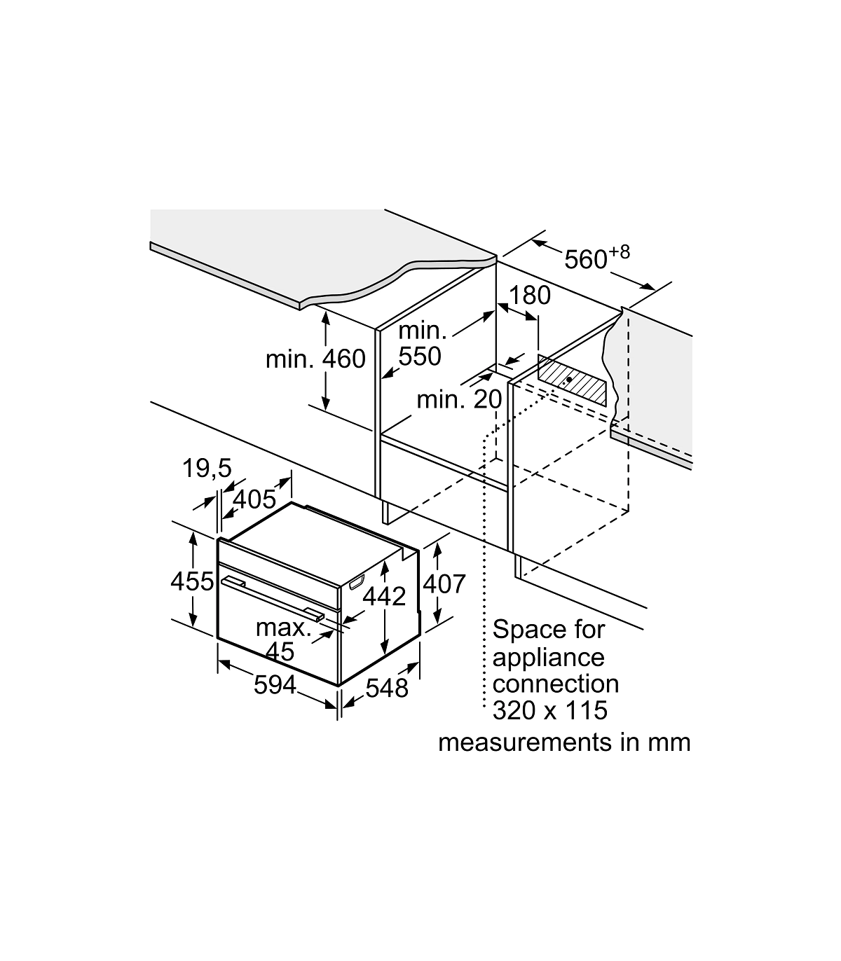 Seeria 8, Integreeritav kompaktahi, mikrolainefunktsiooniga, 60 x 45 cm, Must