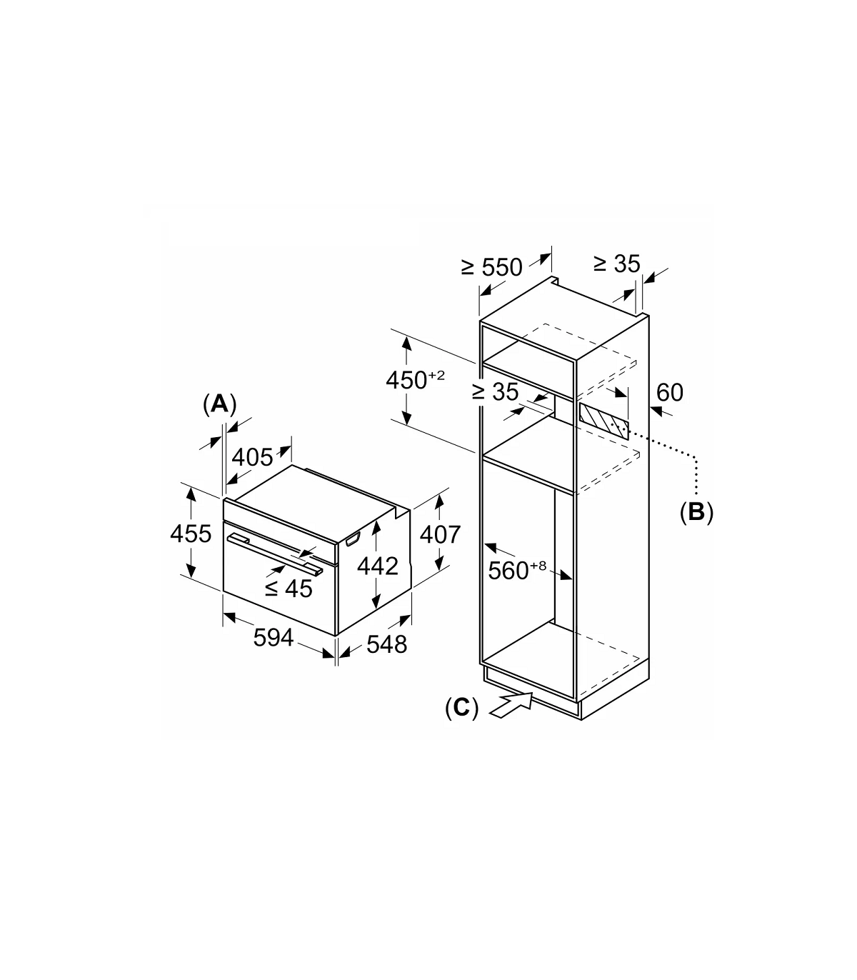 Seeria 8, Integreeritav kompaktahi, mikrolainefunktsiooniga, 60 x 45 cm, Valge