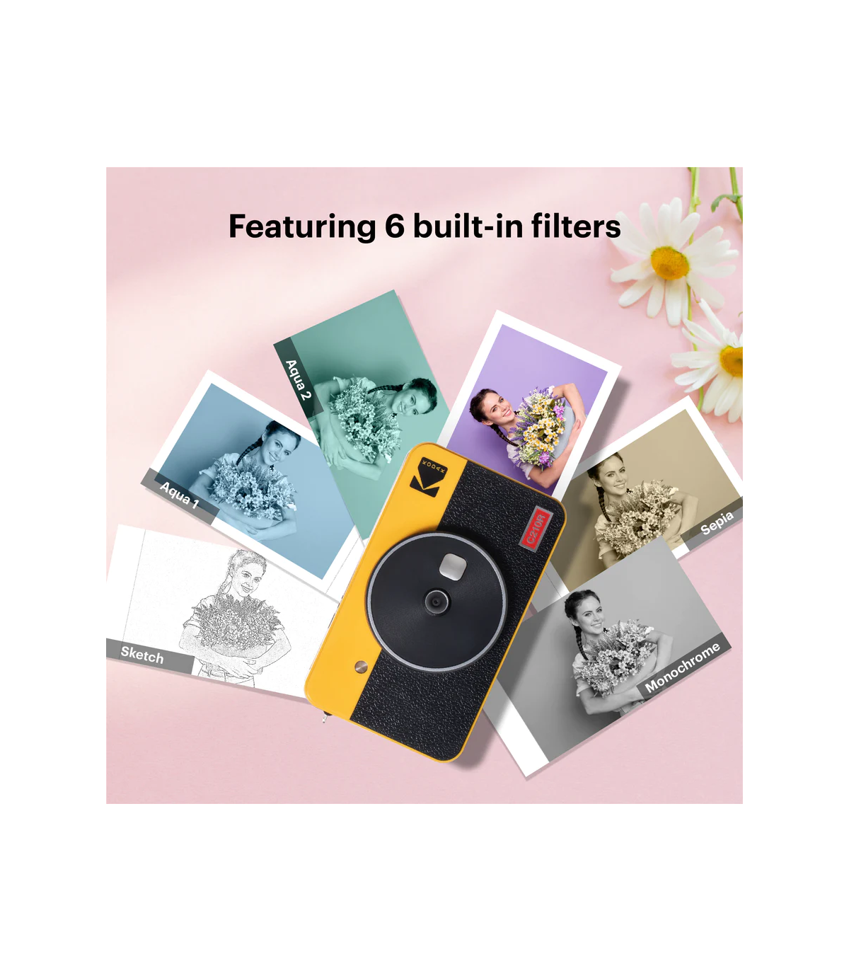 Kaks fototüüpi: Kodak Mini Shot 2 Retro fotoprinteriga on võimalik printida nii ääristega kui ka ääristeta pilte. Selle kiirkaameraga saate luua püsivaid mälestusi, kirjutades oma mälestused üles äärise tüübis. Saate printida ääristeta fotosid, kui soovite neid suuremas formaadis.