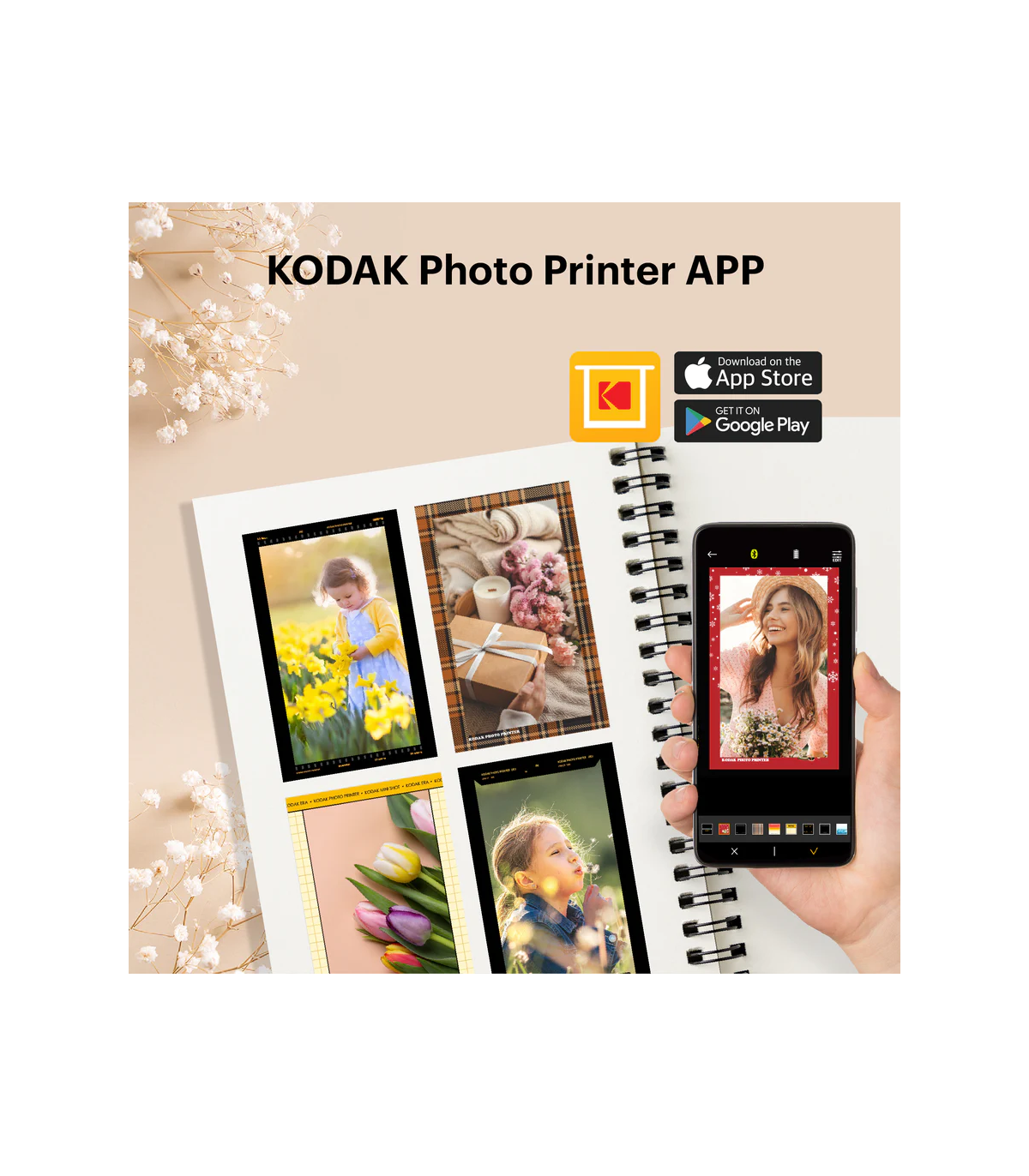 Liitreaalsuse rakendus: laadige alla rakendus KODAK Photo Printer ja printige kõikjalt ja igal ajal. Lõbusate liitreaalsuse funktsioonide ja muude dekoratiivsete funktsioonide (nt ilu, filtrid, raamid ja muu) abil saate rakendust kasutada oma fotode väljendamiseks. Meie rakendus ja kiirfotokaamera teevad ülejäänud töö teie eest ära!