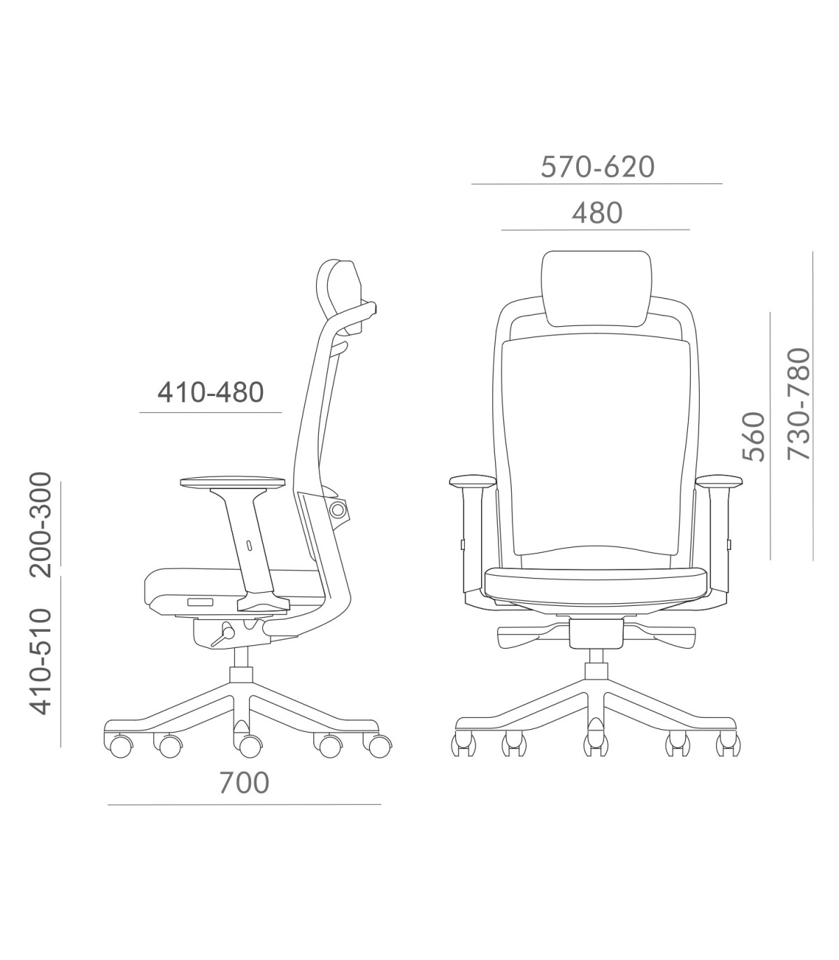 Iste: istme laius 48cm, istme sügavus on reguleeritav vahemikus 41-48cm. Istme kõrgus on reguleeritav gaasamordi abil vahemikus 42,5-52,5cm.